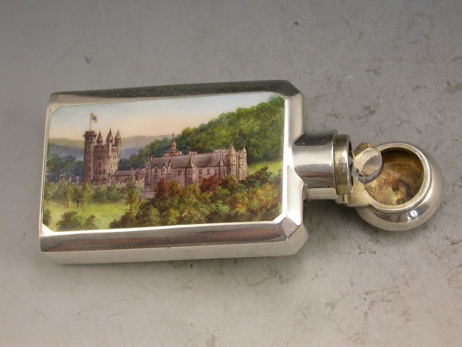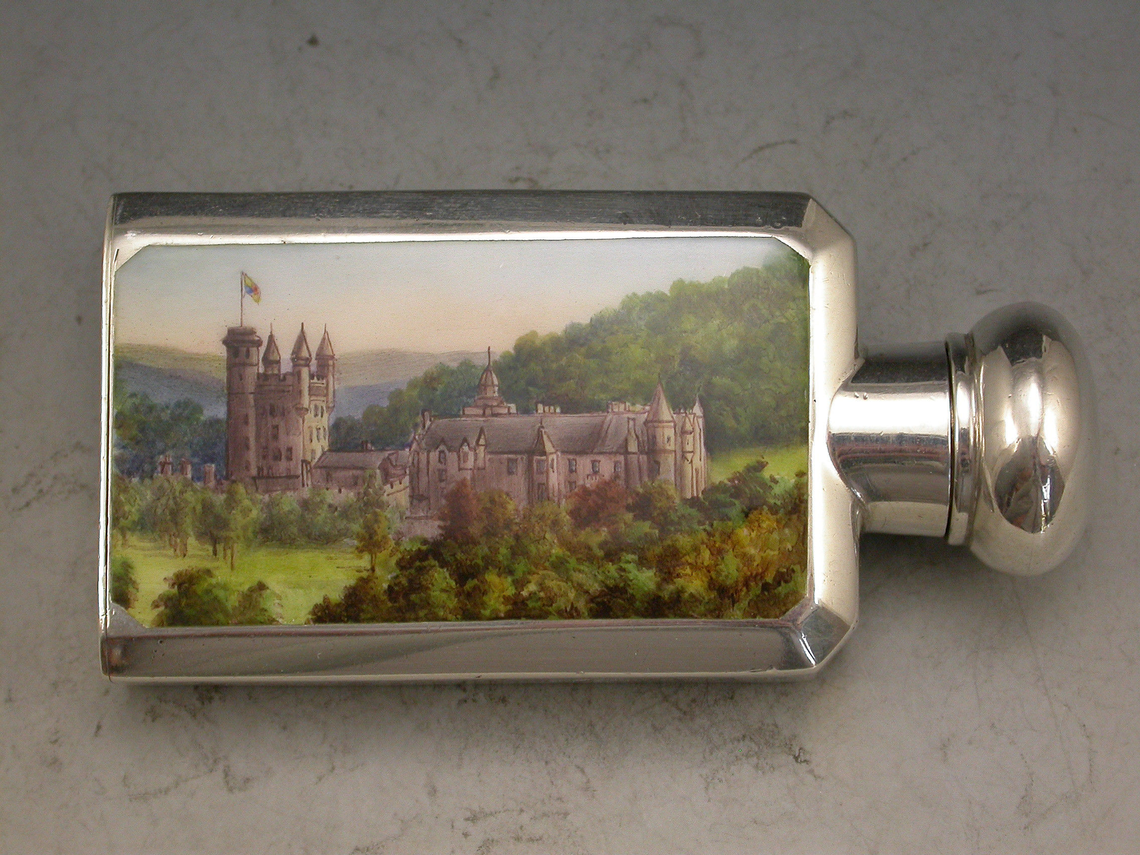 Victorian Silver & Enamel Scent Bottle 'Balmoral Castle'