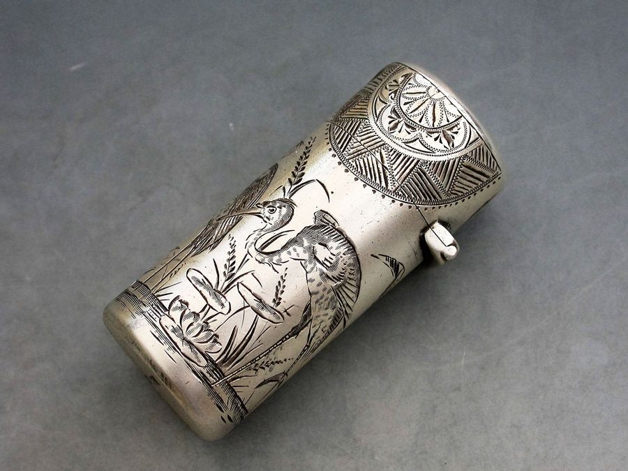 Victorian Silver Aesthetic Engraved Scent Bottle 'Herons'