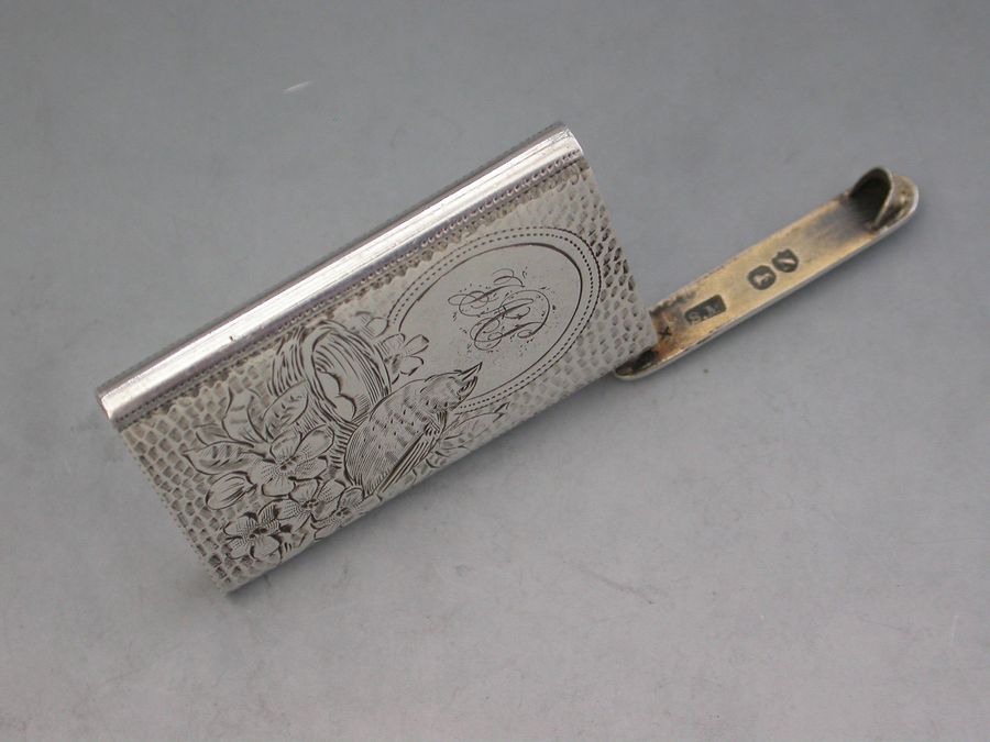 Victorian Silver Aesthetic Engraved Vesta Case 'Finches'