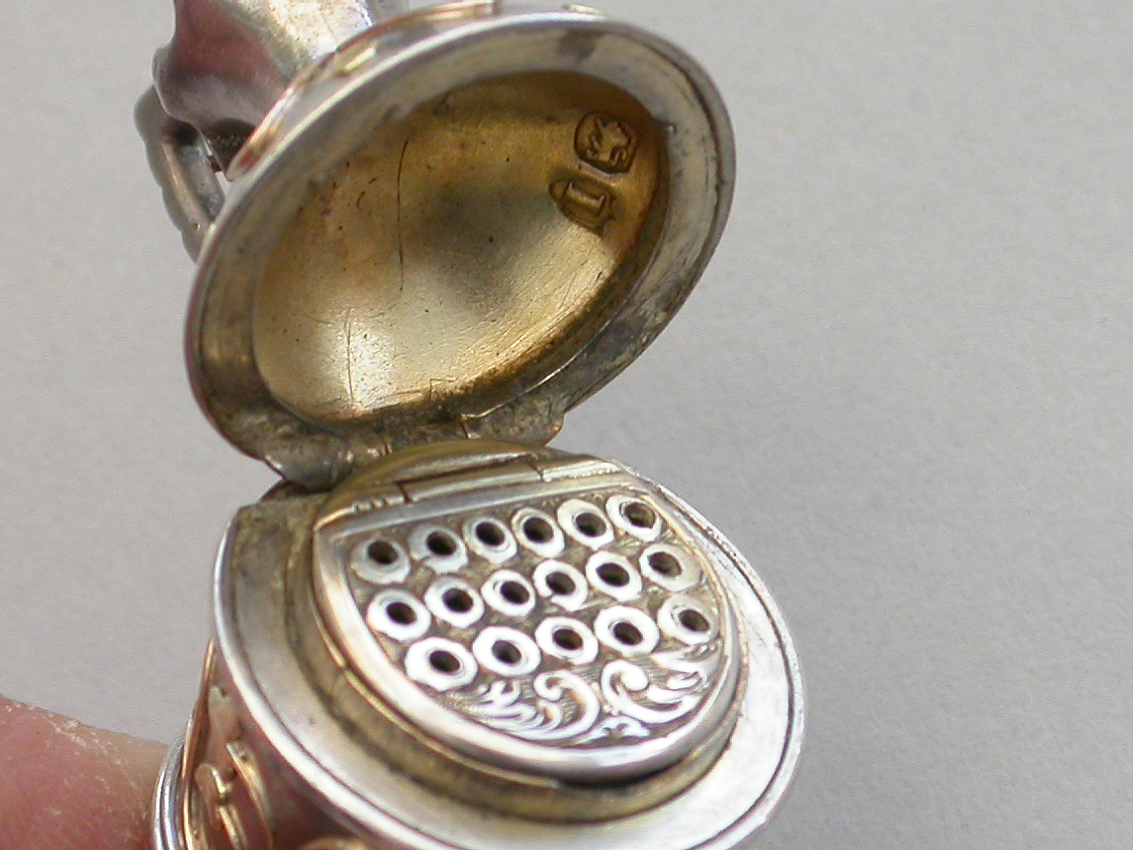 Fully marked on the base of the foot with date letter and lion passant inside the lid and also marked on the grille.