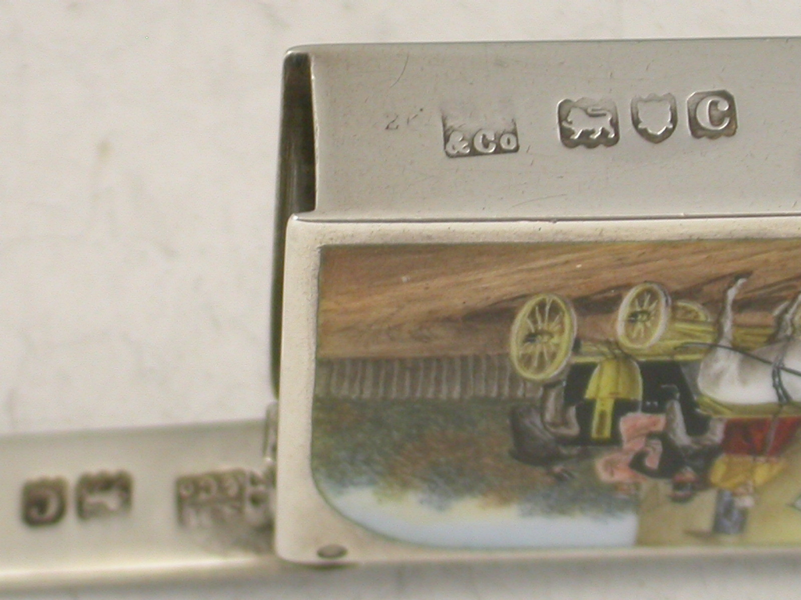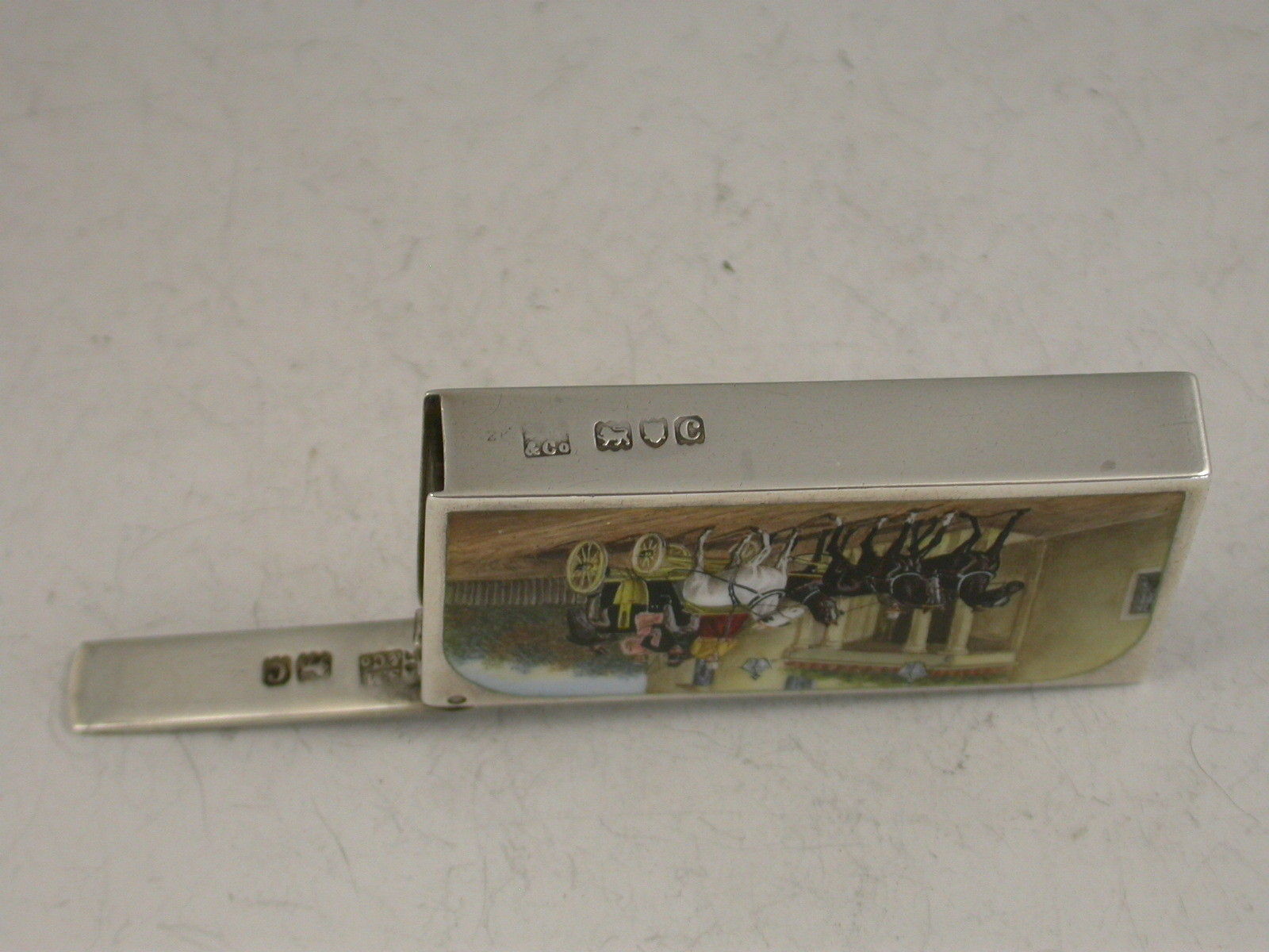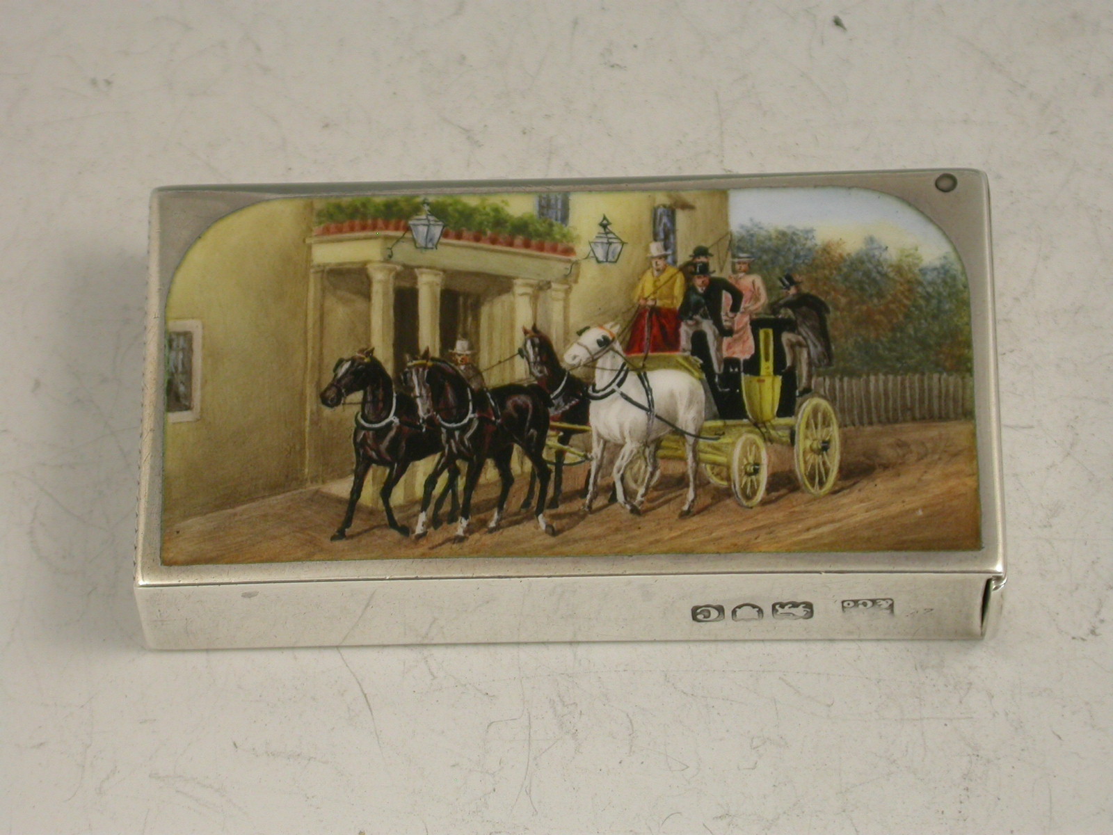 Victorian Silver & Enamel Coaching Scene Vesta Case