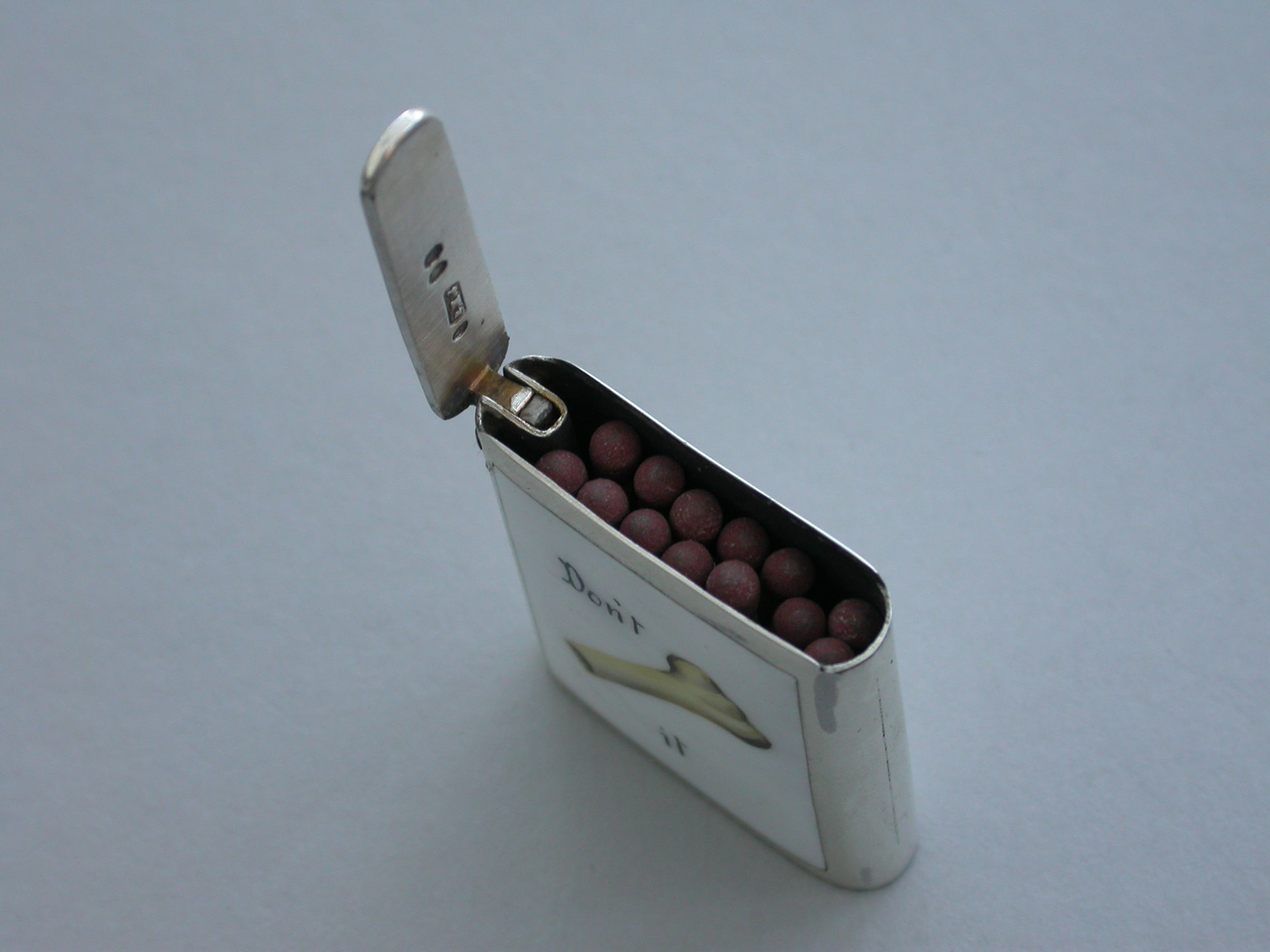 Barnett Henry Joseph produced a series of these enamel Riddle Vesta Cases between 1885 and 1887.