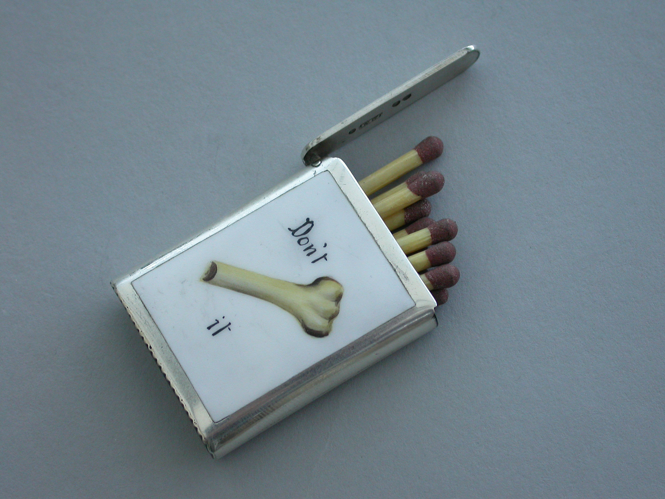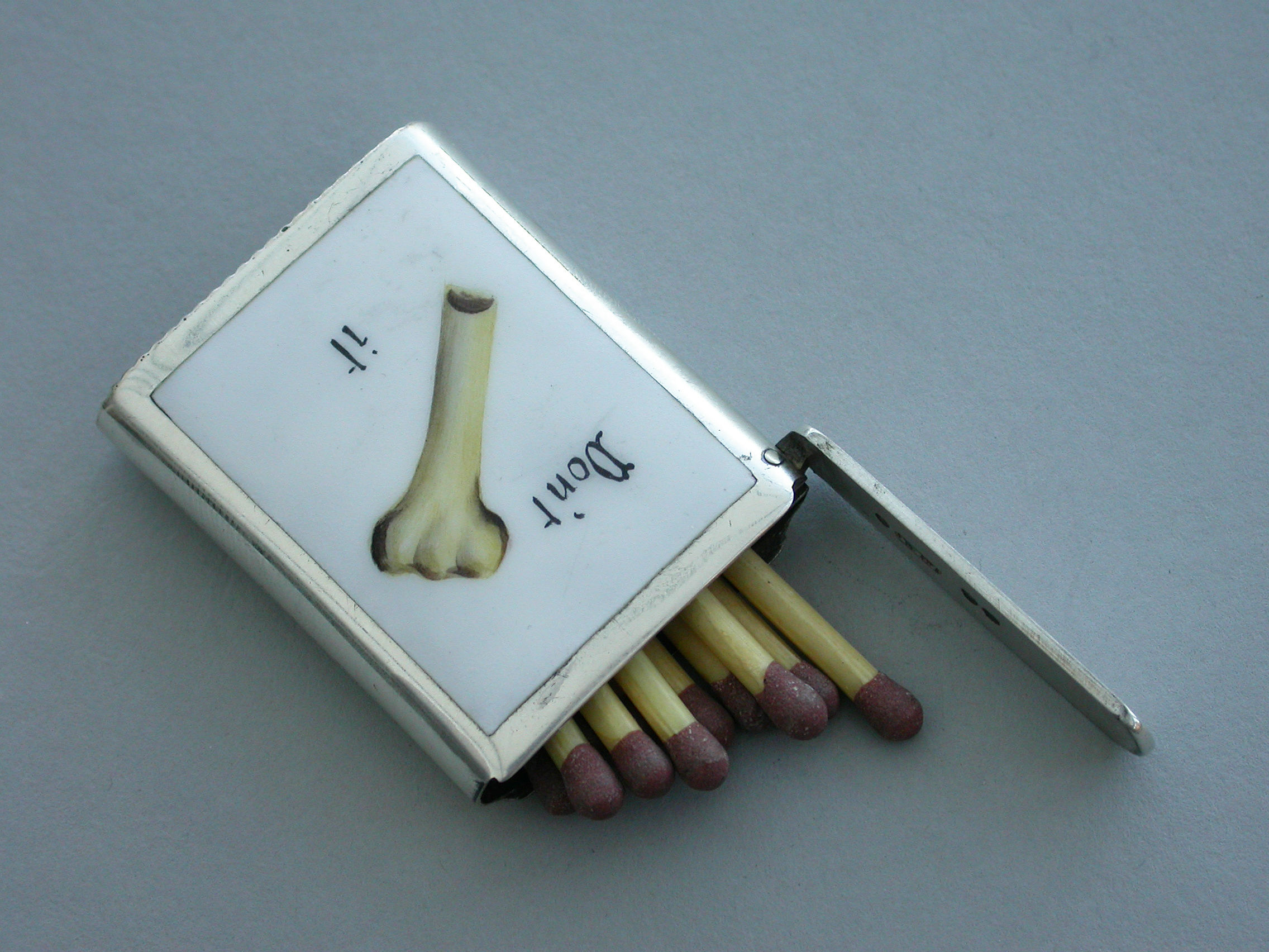Victorian Silver & Enamel ""Don't Half-Bone It"" Riddle Vesta Case