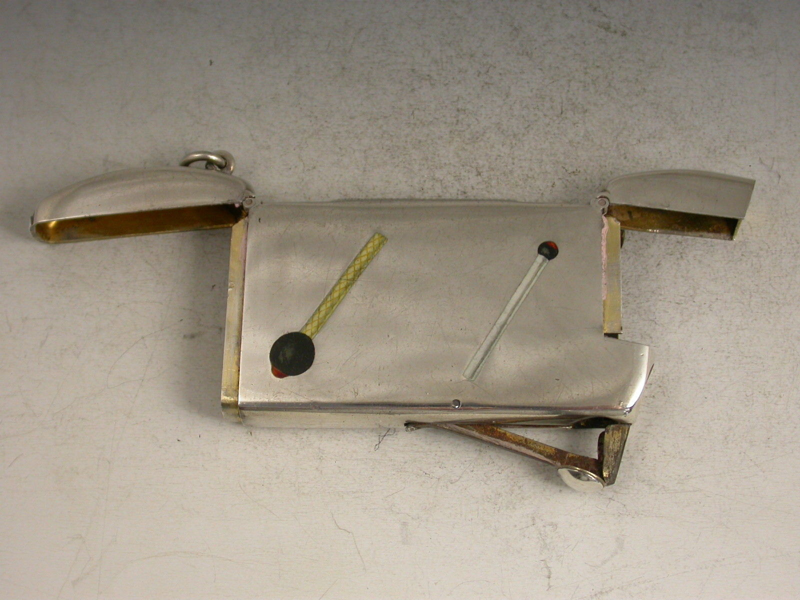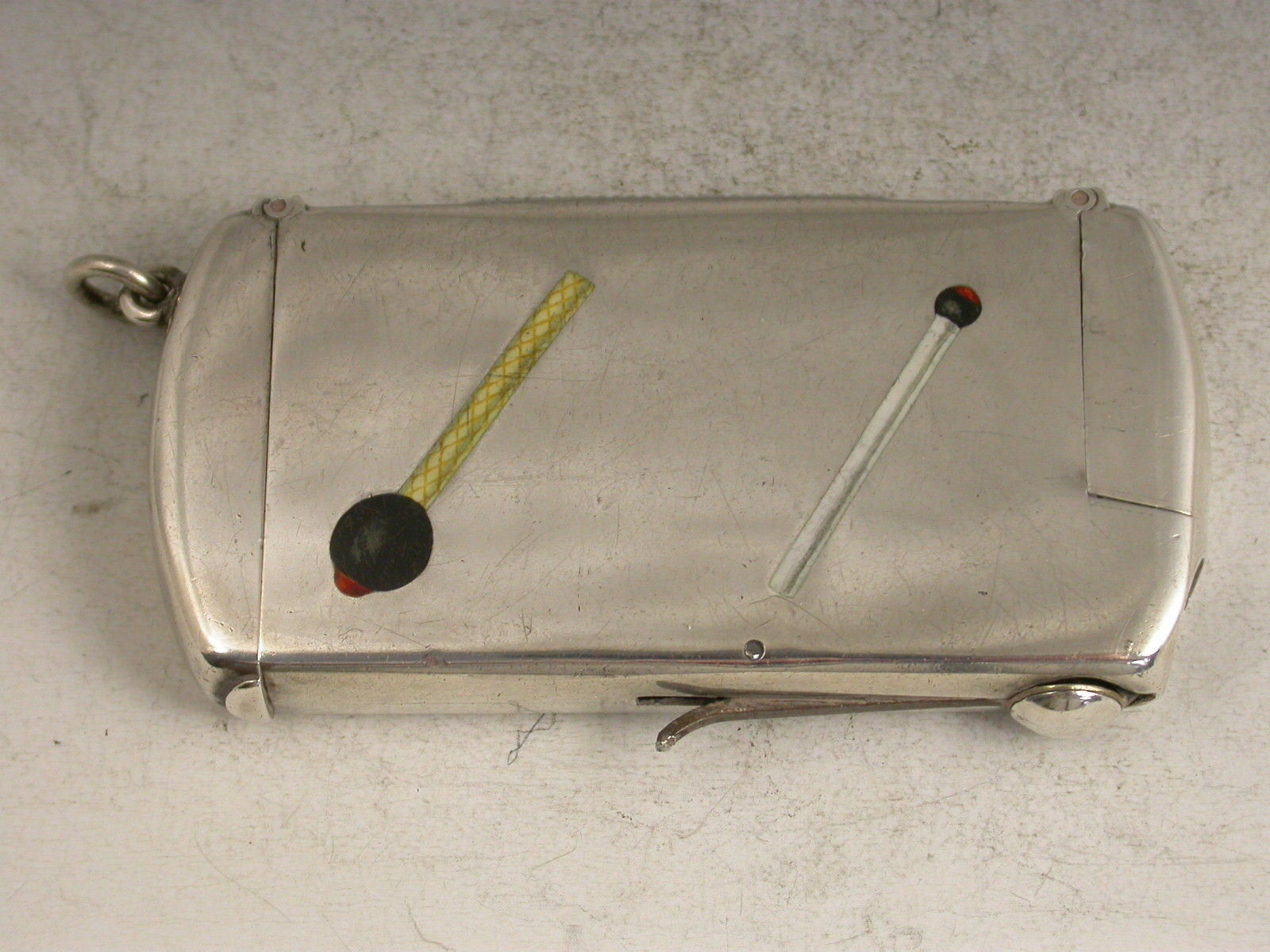 Victorian Silver & Enamel Double Ended Vesta Case & Cigar Cutter