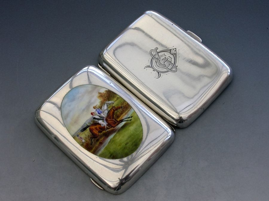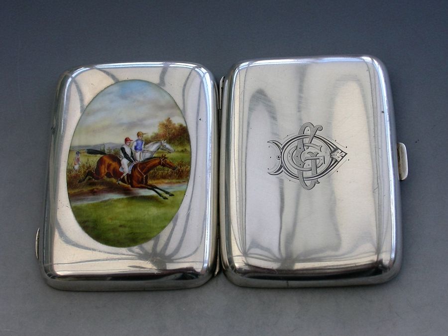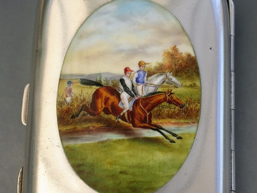 Victorian Silver & Enamel Horse Racing Scene Cigarette Case