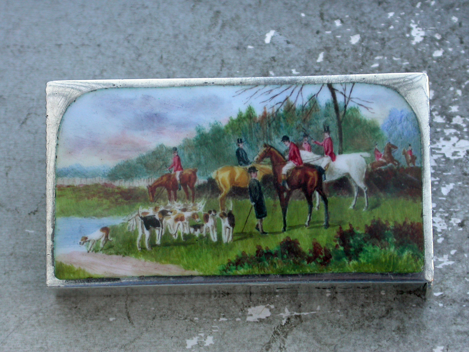 Victorian Silver & Enamel Hunting Scene Vesta Case
