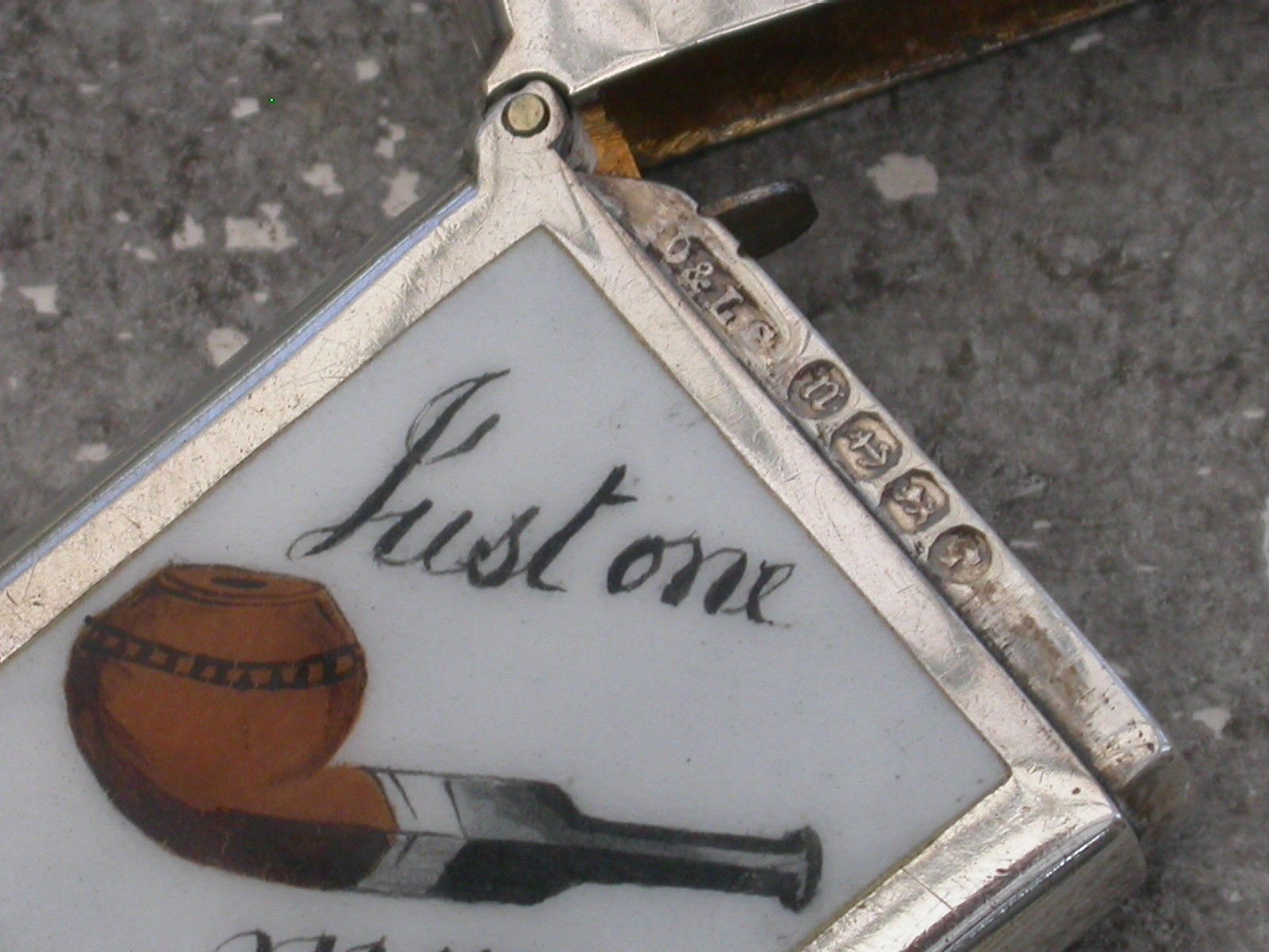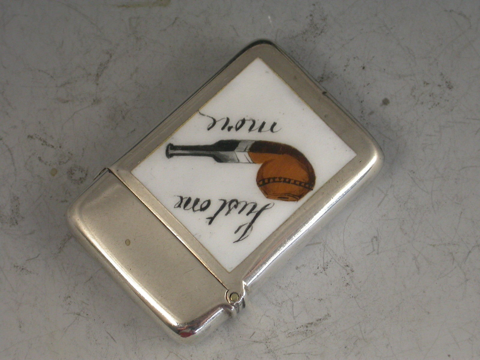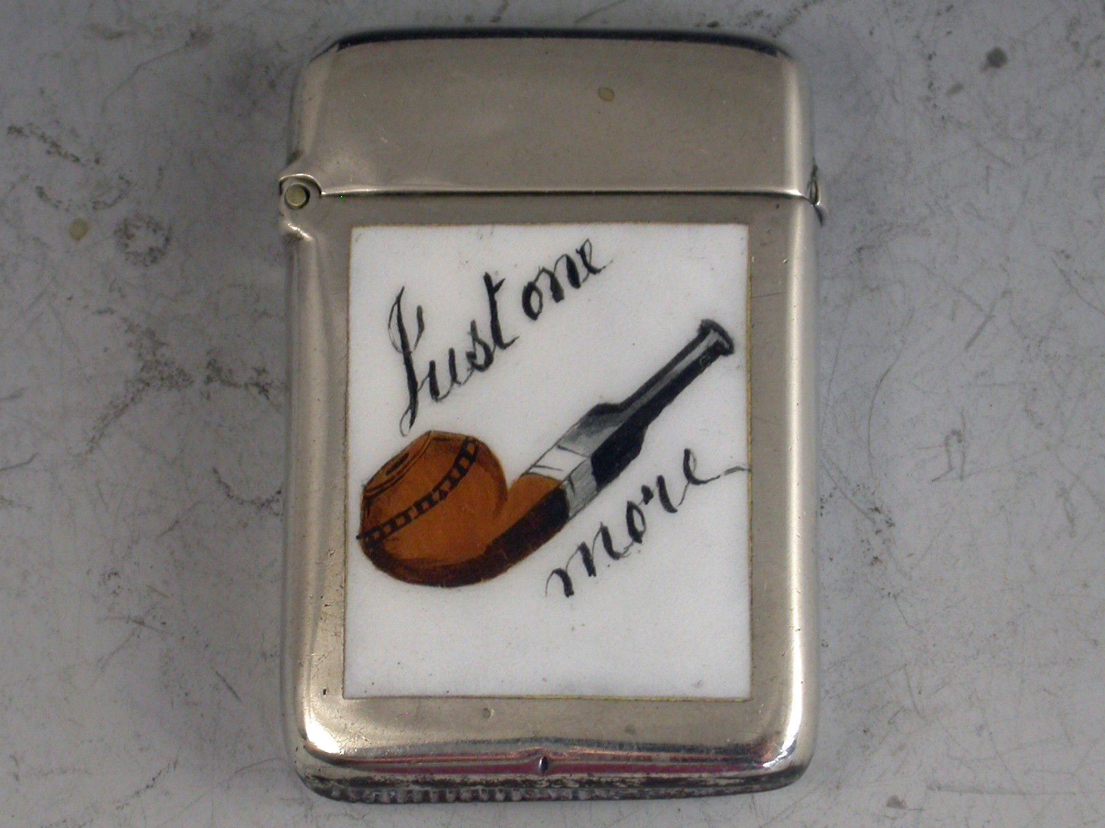Victorian Silver & Enamel ""Just one more Pipe"" Vesta Case