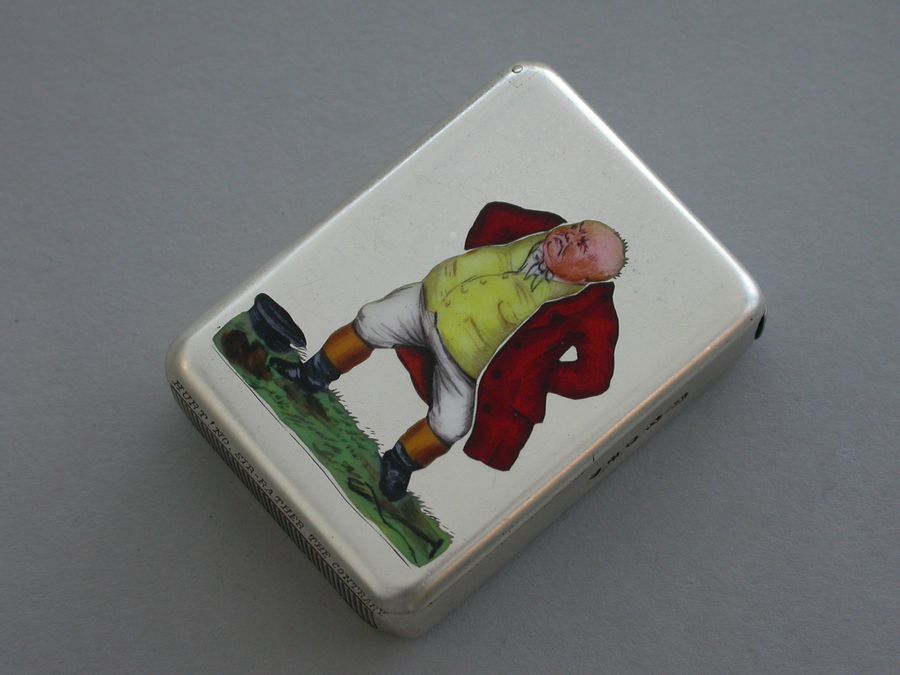 Victorian Silver & Enamel Mr Jorrock's Vesta Case