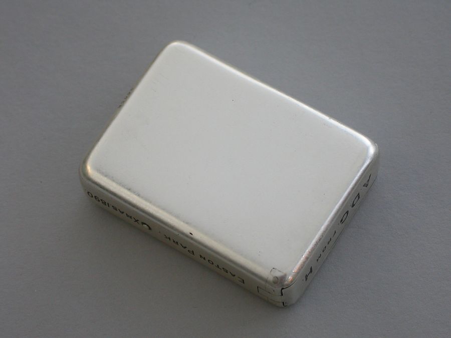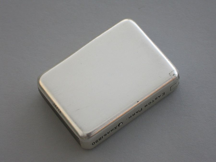 The sides of the case engraved with contemporary presentation inscription - Easton Park Xmas 1890. The end of the case next to the striker engraved - Hurt! No, Sir - Rather the Contrary. Silver gilt interior.