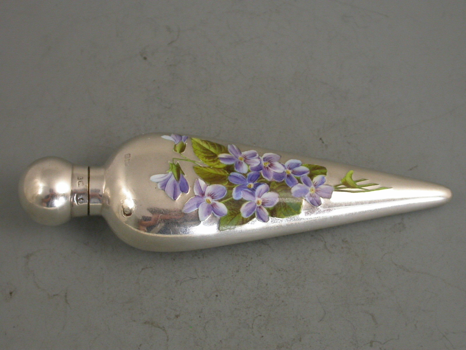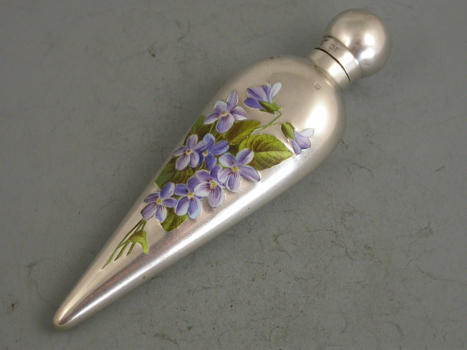 Victorian Silver & Enamel Scent Bottle 'Violets'