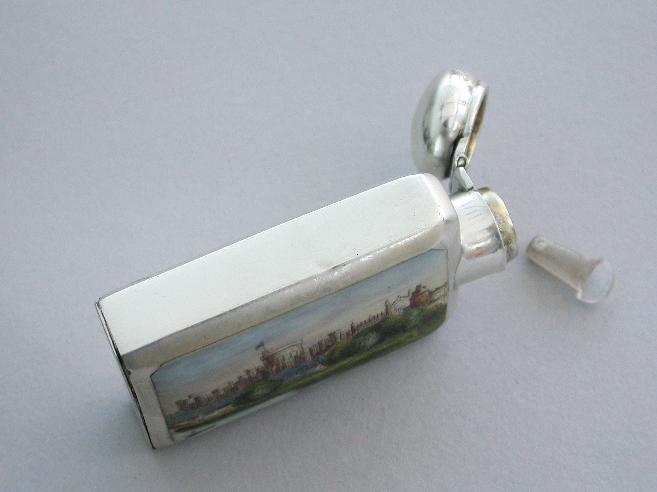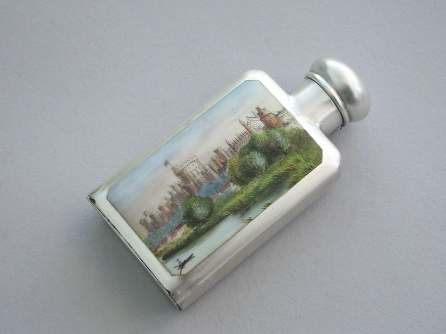 Victorian Silver & Enamel Scent Bottle - Windsor Castle