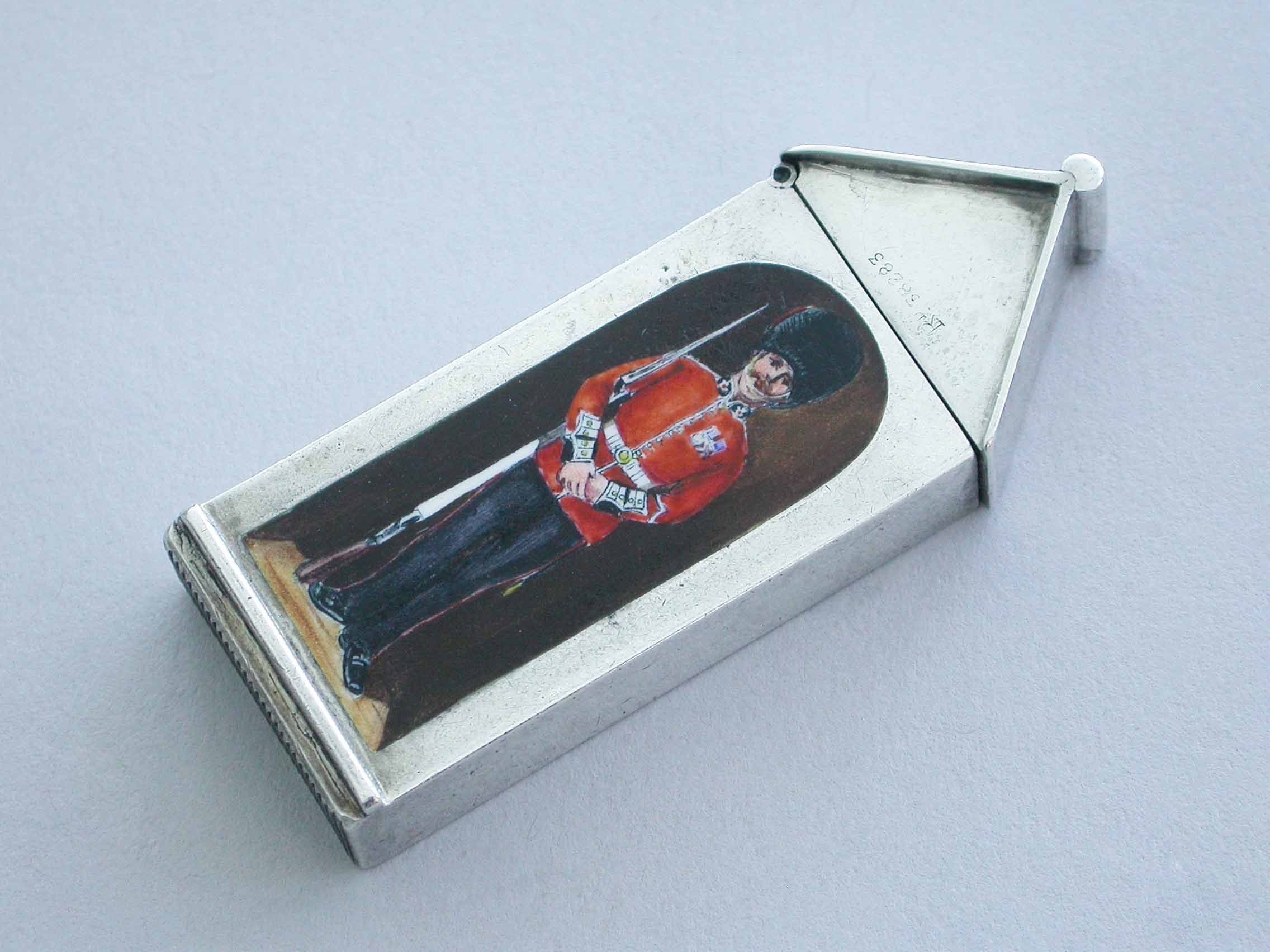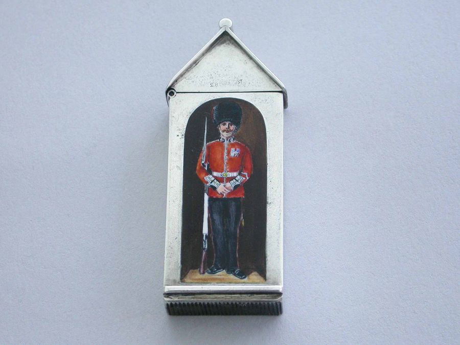 Victorian Silver & Enamel Sentry Box Vesta Case - The Coldstream Guards