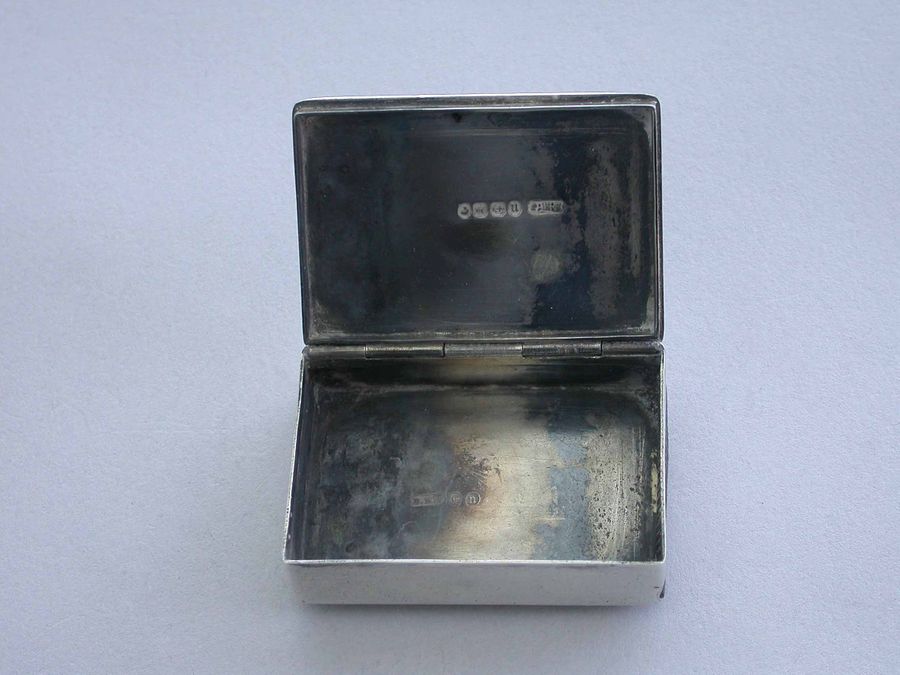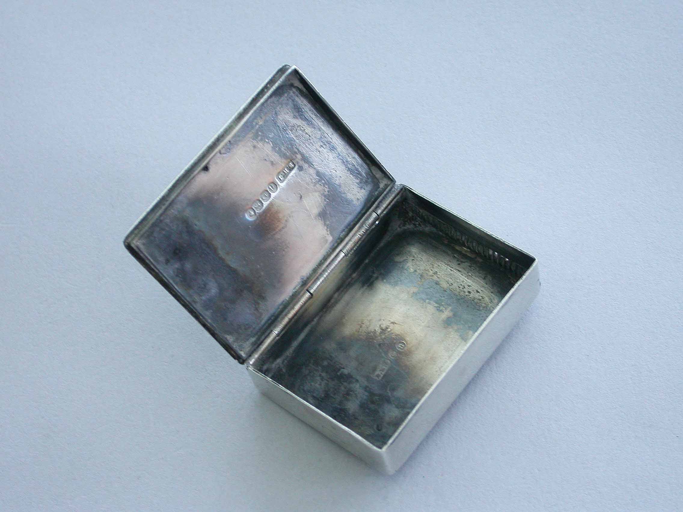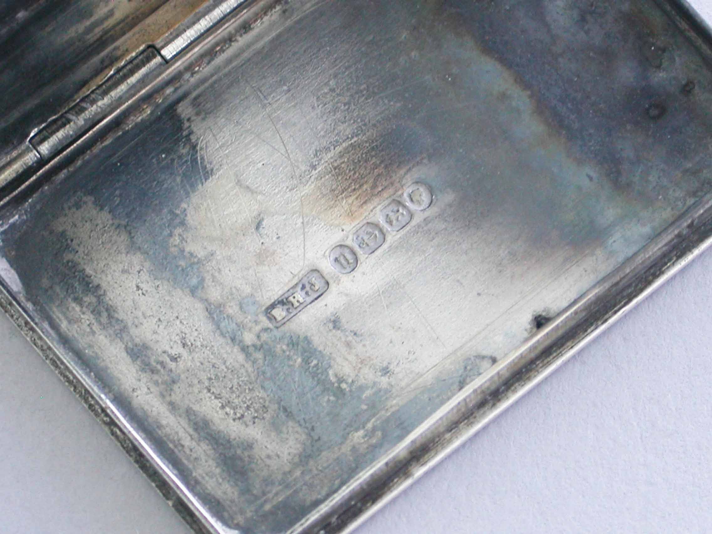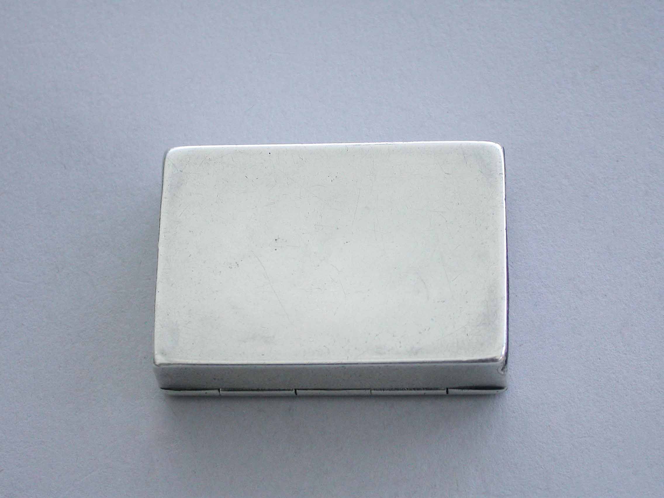 A Victorian silver Vesta Case of plain rectangular form, the hinged lid enamelled with an image of a black devil holding a trident and with the legend; "I am George Linton 24.6.89 Who the devil are you".
