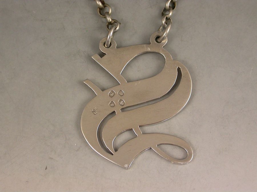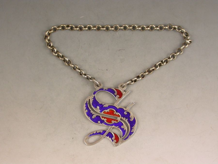 Victorian Silver & Enamel Wine Label Gothic Letter 'S'