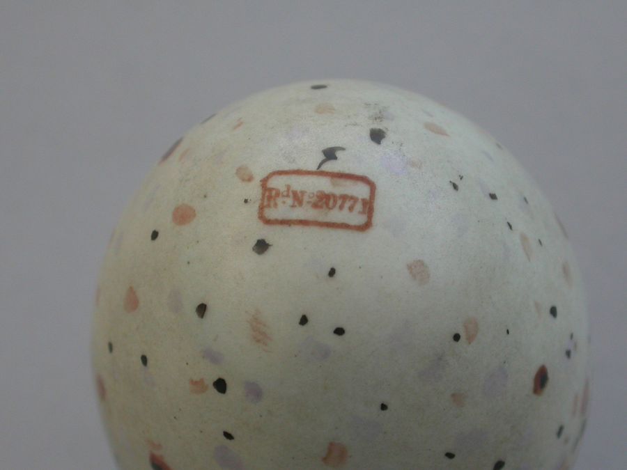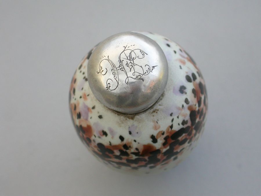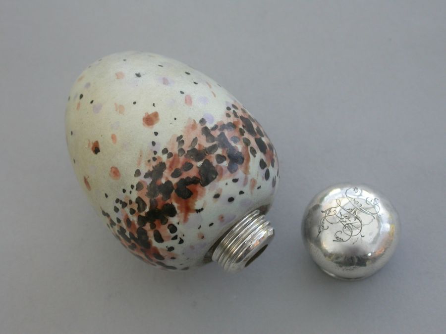 A good Victorian novelty silver and MacIntyre ceramic Scent Bottle made in the form of a gulls egg, with screw-off silver top.