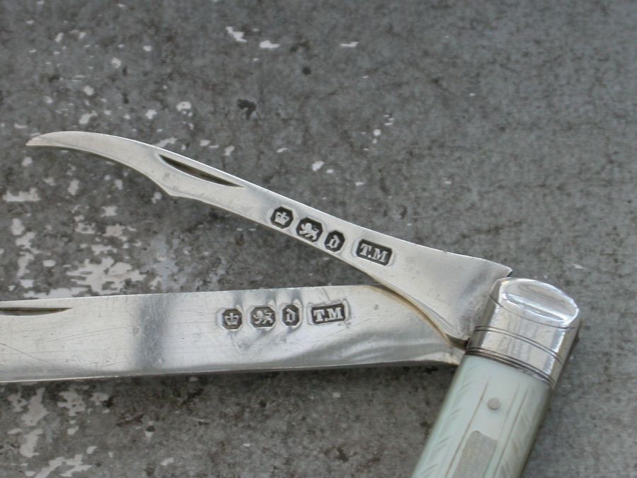 Victorian Silver & Mother of Pearl Folding Fruit Knife with Seed Pip Pick