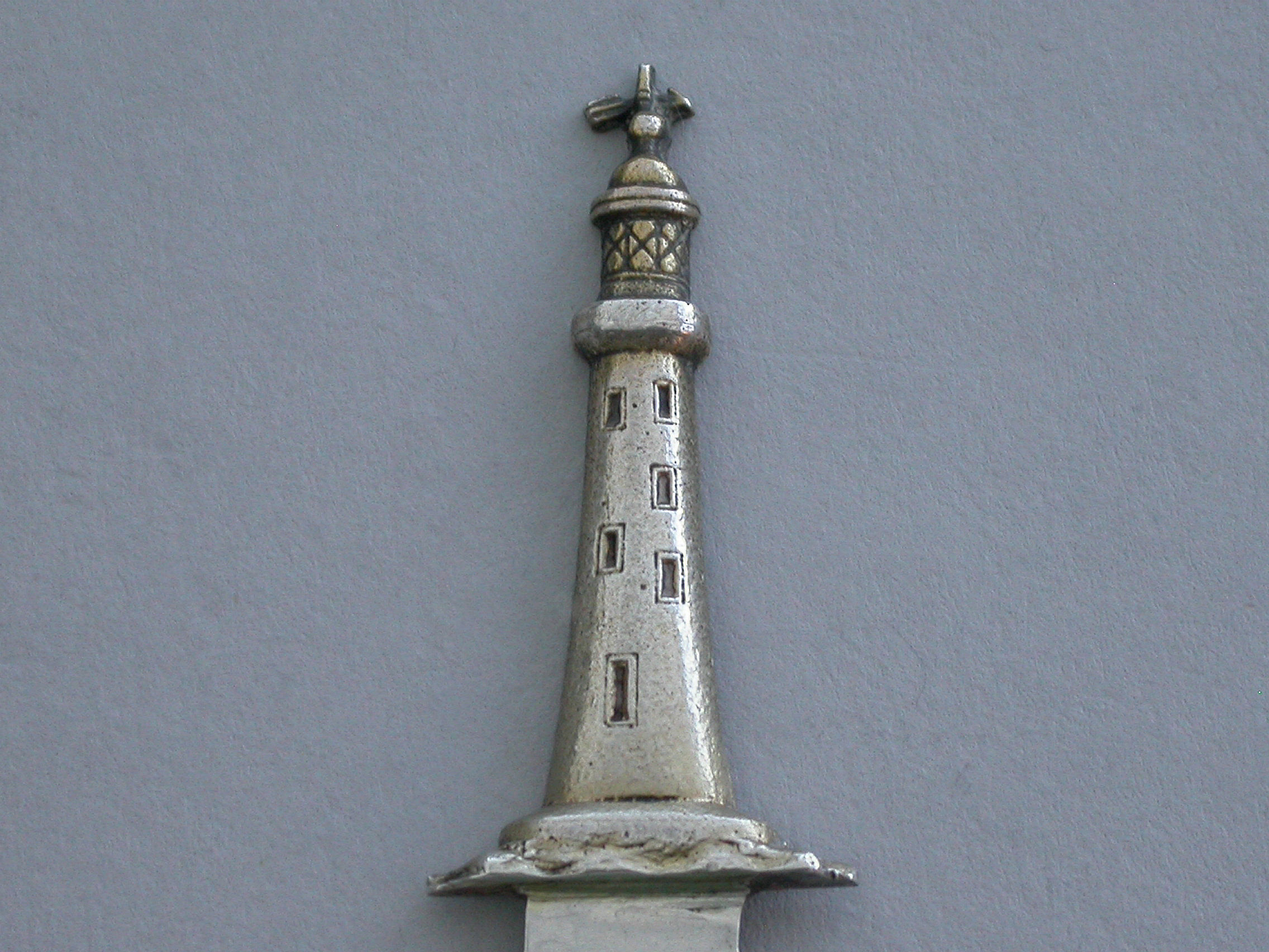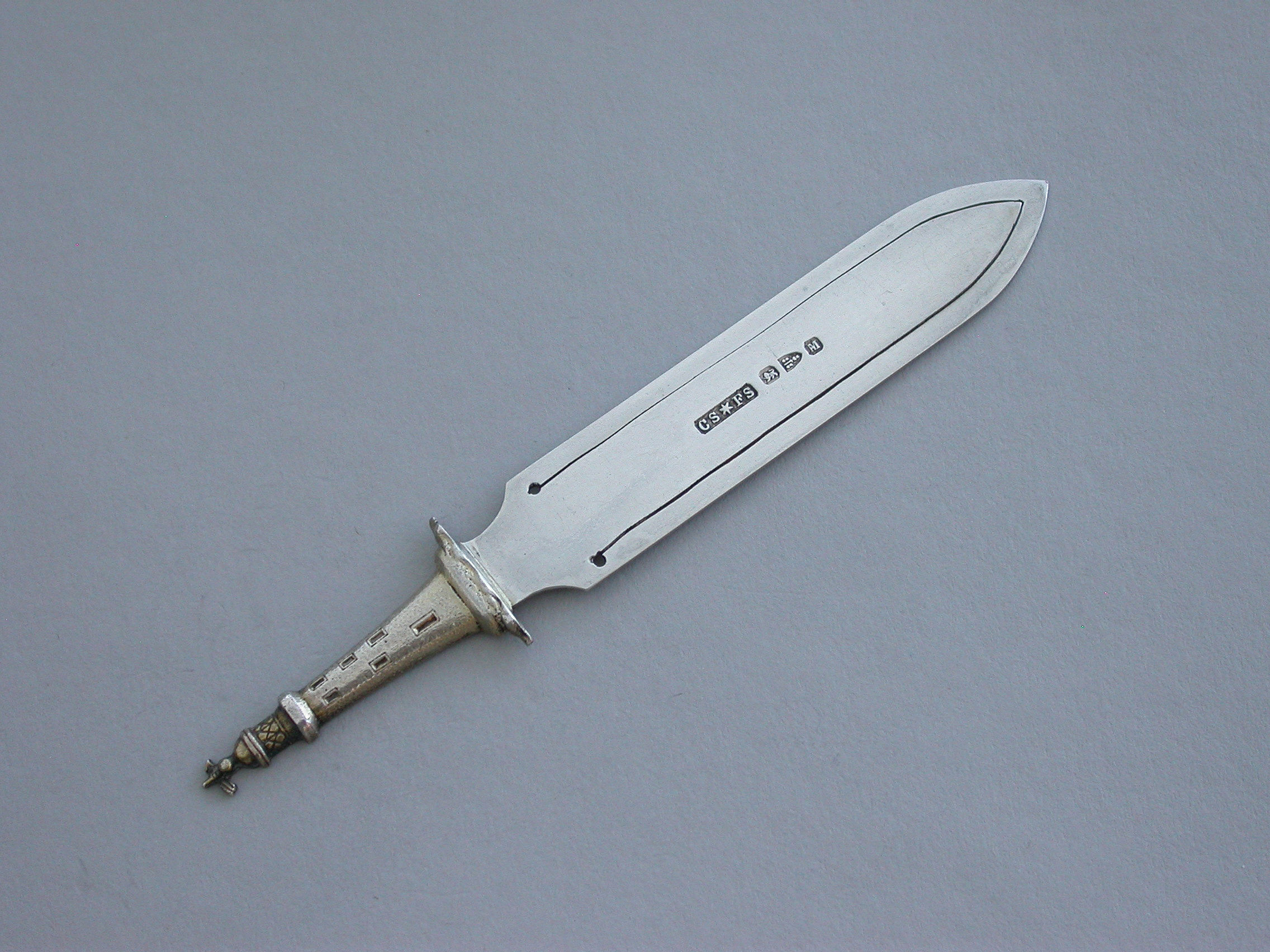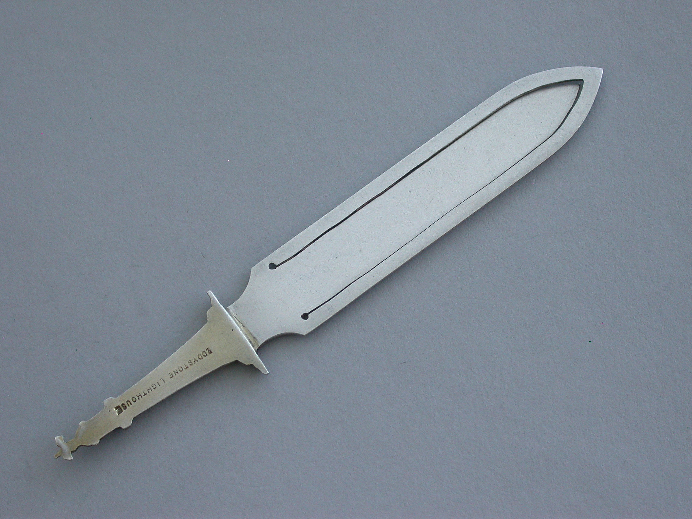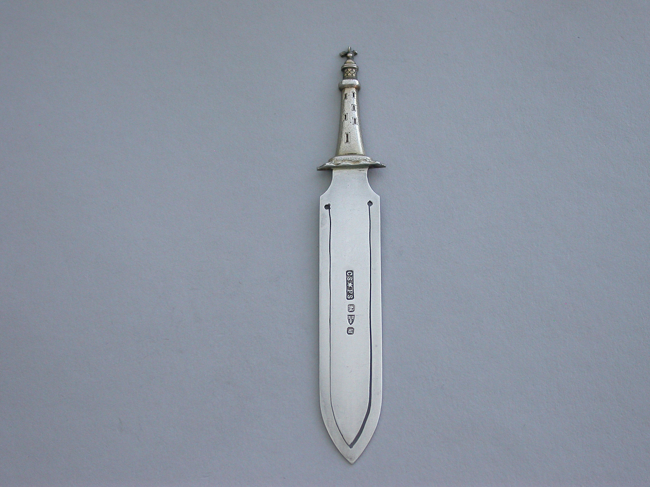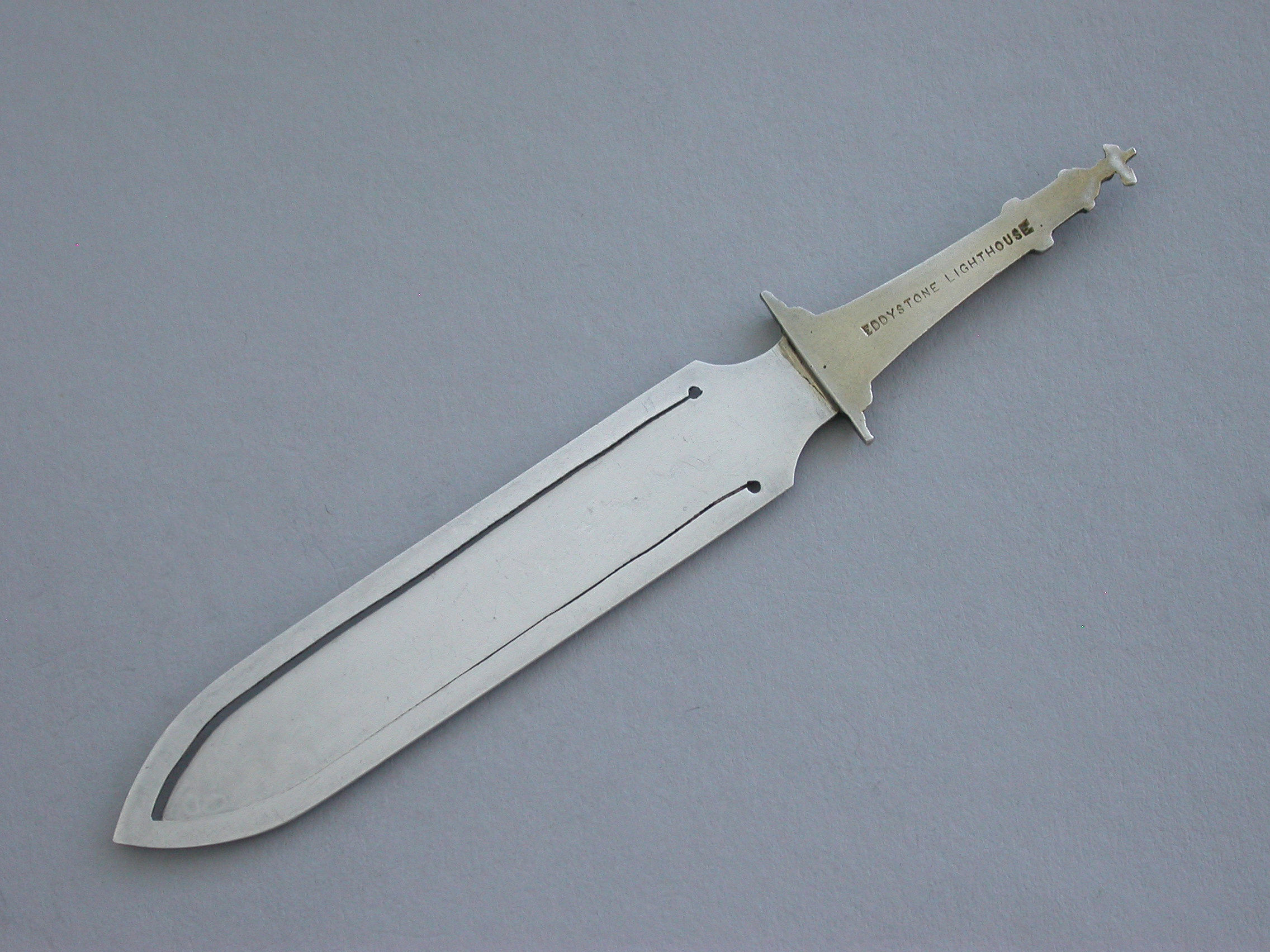 A rare and good quality Victorian silver and parcel gilt Bookmark, the gilded terminal formed as the Eddystone Lighthouse.