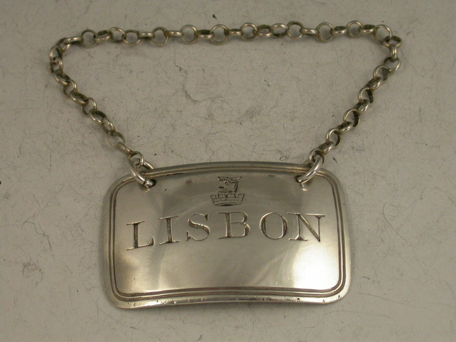 Victorian Silver Armorial Wine Label 'Lisbon'