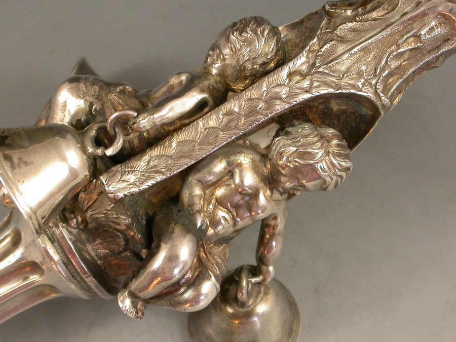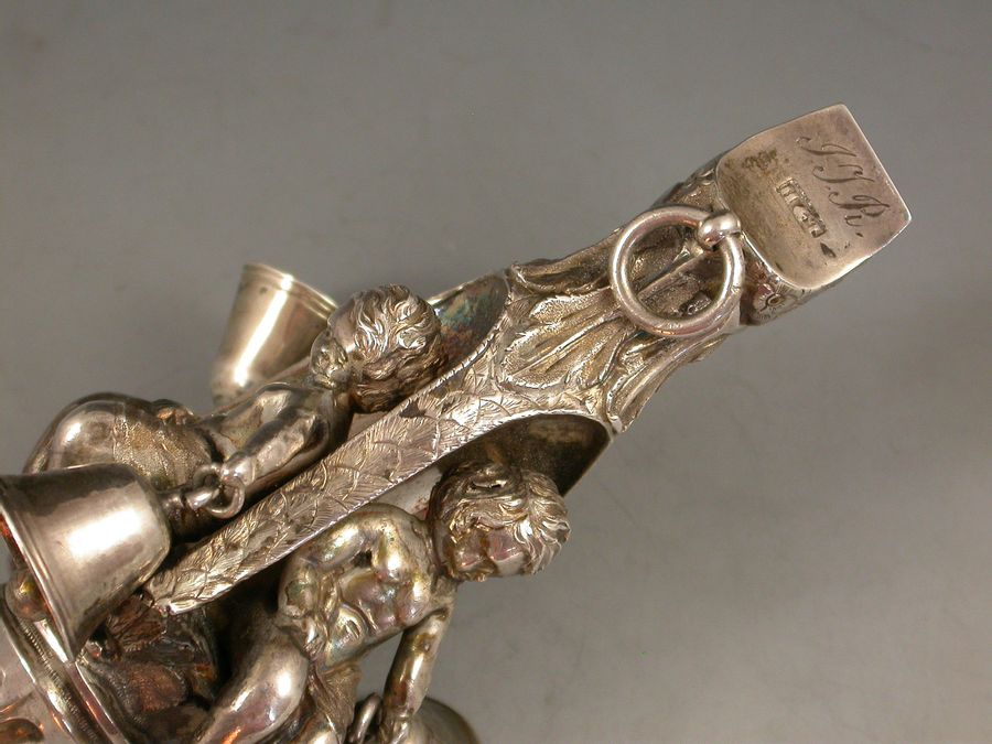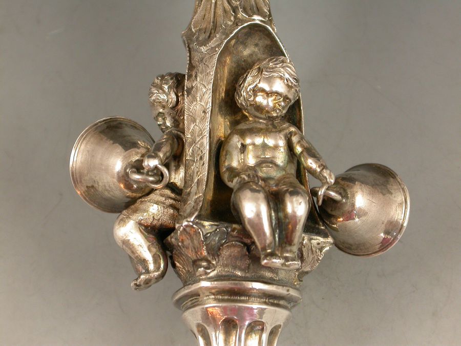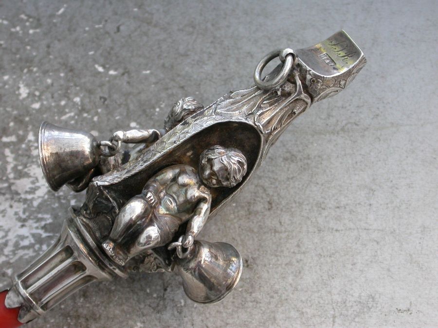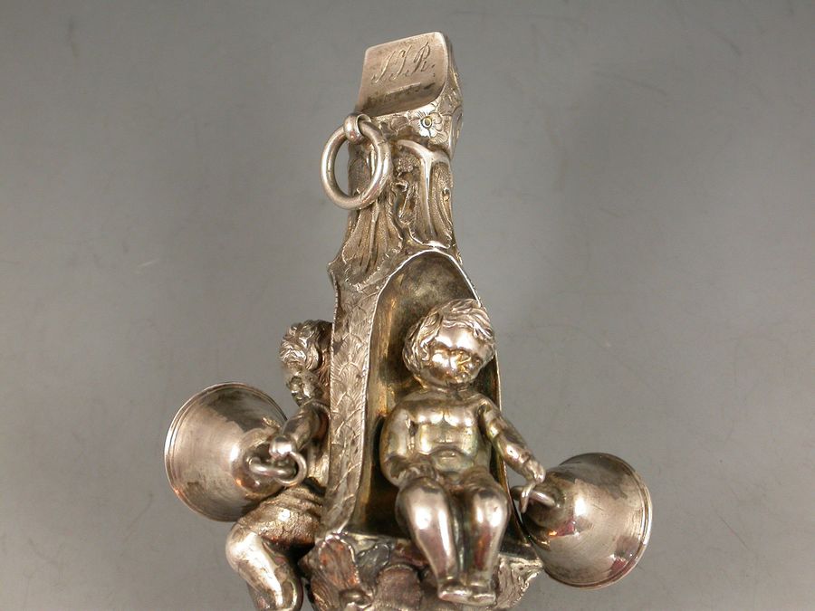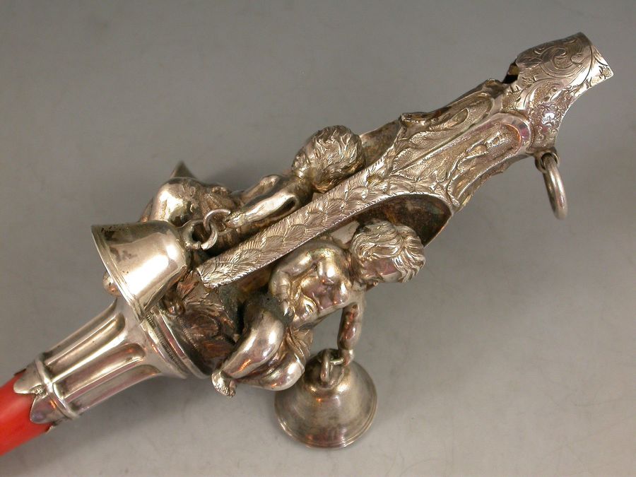 Victorian Silver Baby's Rattle Alcoves Inset With Putti