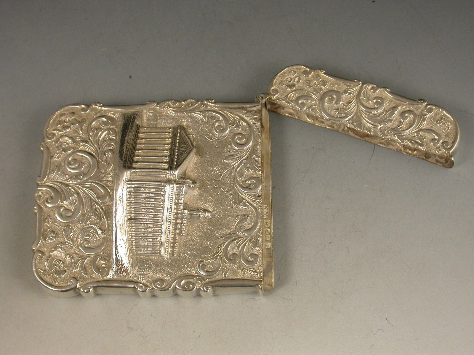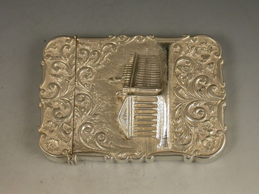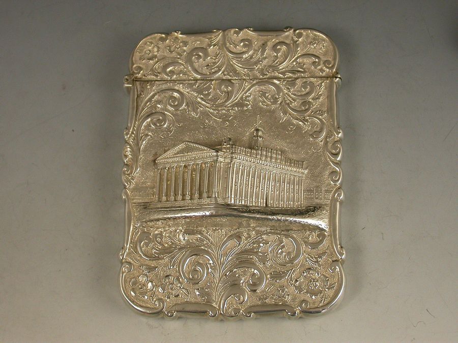 Victorian Silver Castle Top Card Case 'The Royal Exchange'