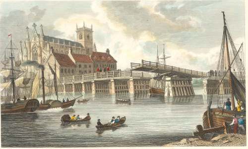 The attached print depicting the same scene was produced by J & F Harwood of Fenchurch Street in London in 1842. It shows a train crossing the newly opened [in 1840] bridge across the Ouse, linking Selby by rail to Hull.