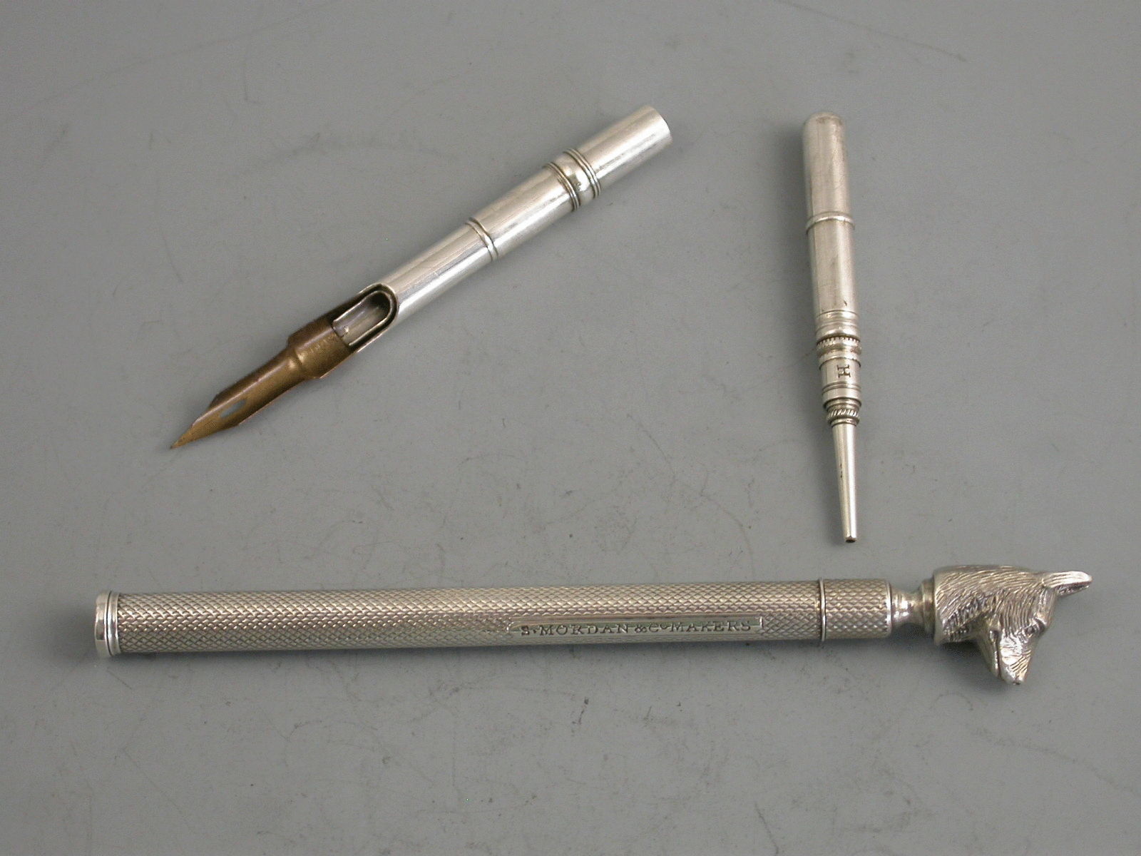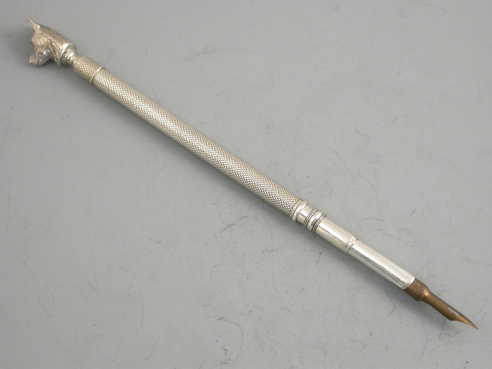 Victorian Silver Combination Dip Pen & Propelling Pencil 'Dog' Finial