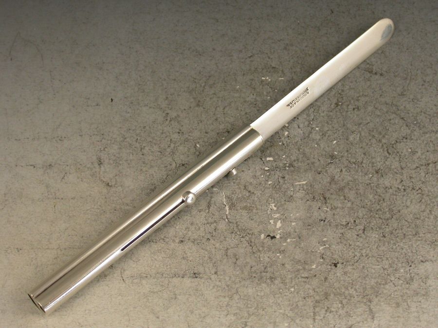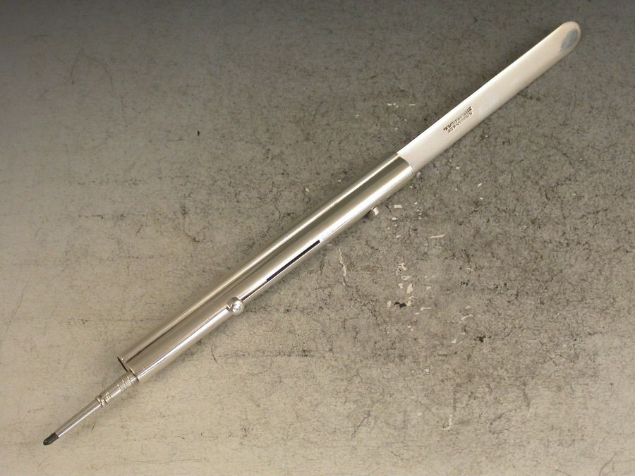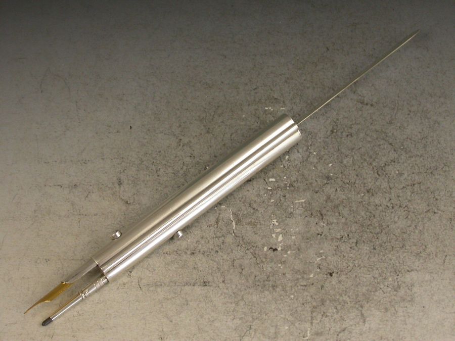 A very fine quality Victorian silver combination pen, propelling pencil and paper knife, the plain silver body with three slider buttons to extend the implements.