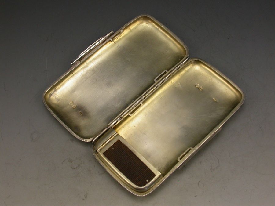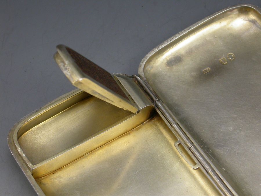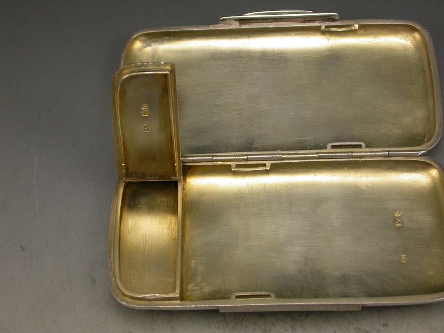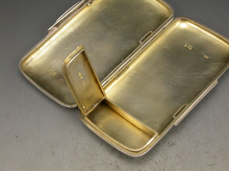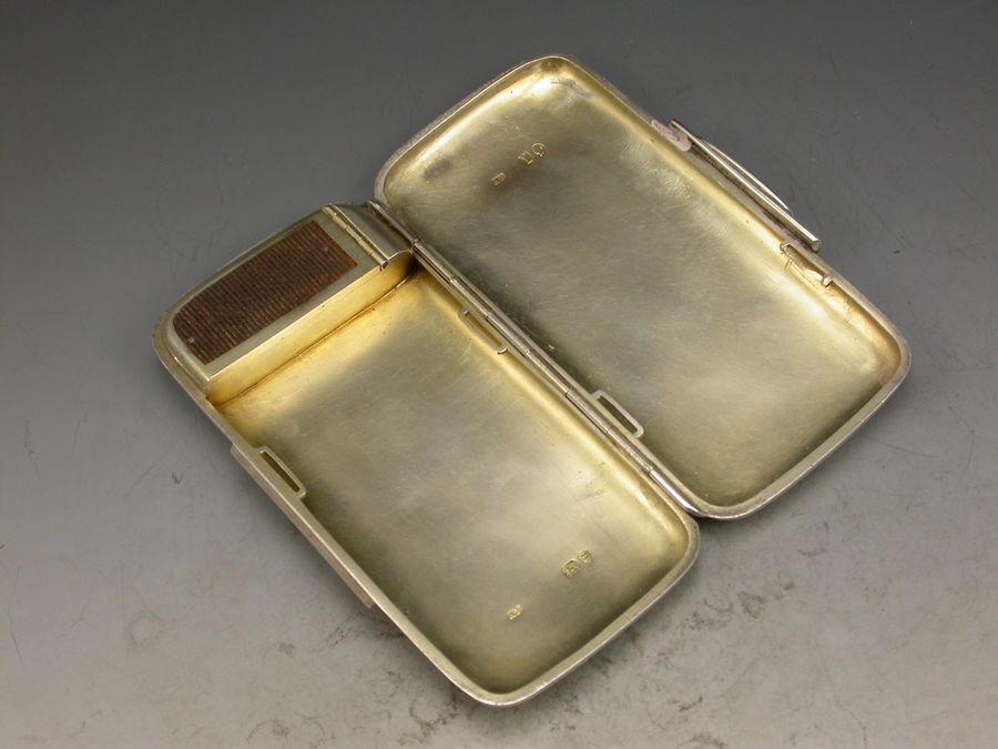 A good quality Victorian silver combined Cigarette Case and Vesta Case of rounded rectangular form with ""patent clasp"" sprung closure, opening to reveal a silver gilt interior containing a hinged vesta compartment.