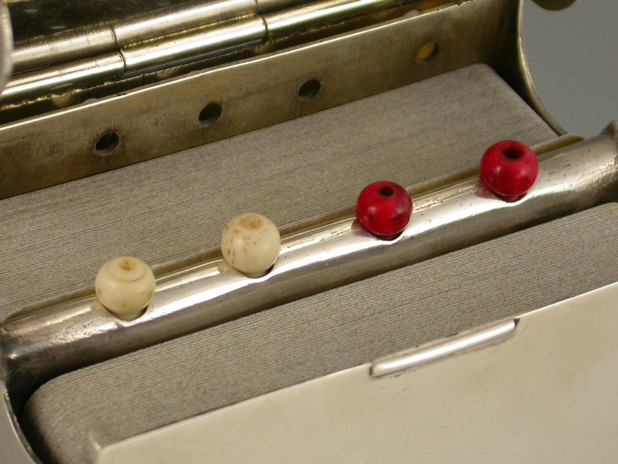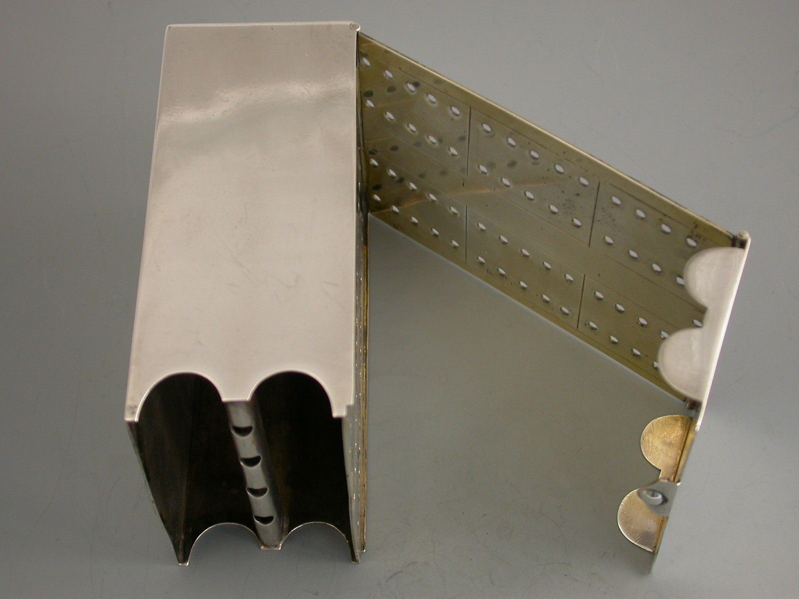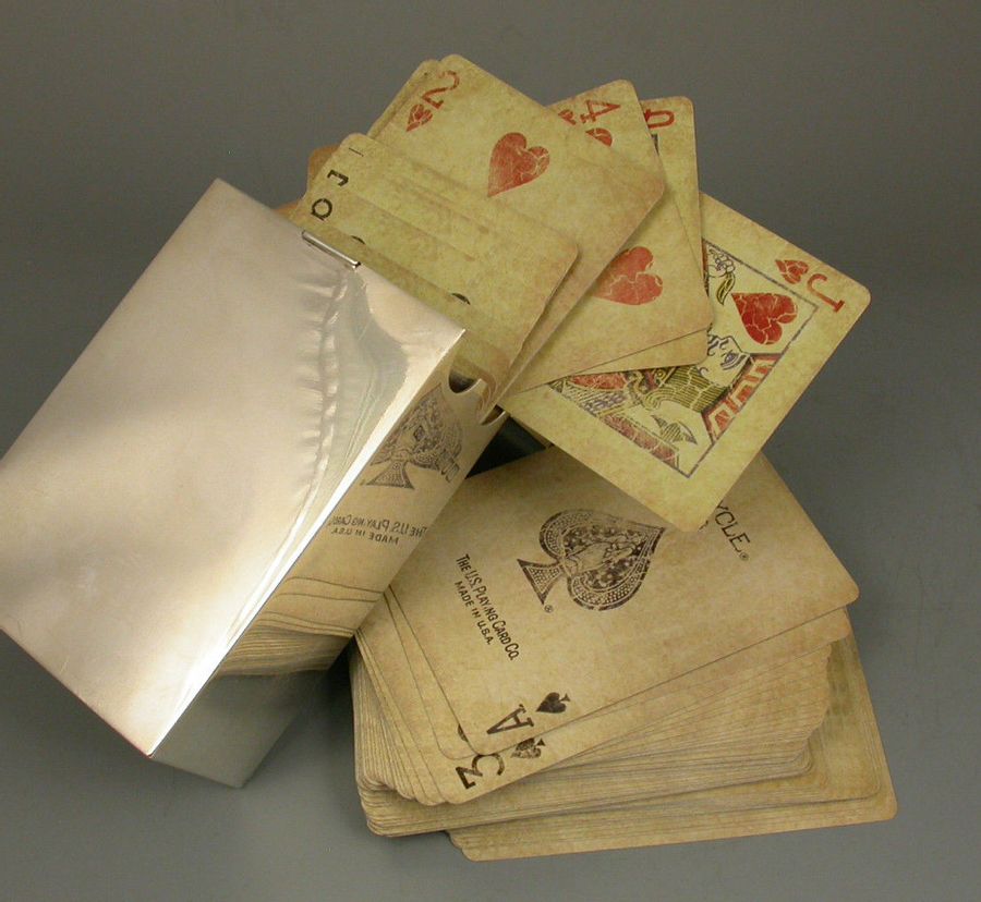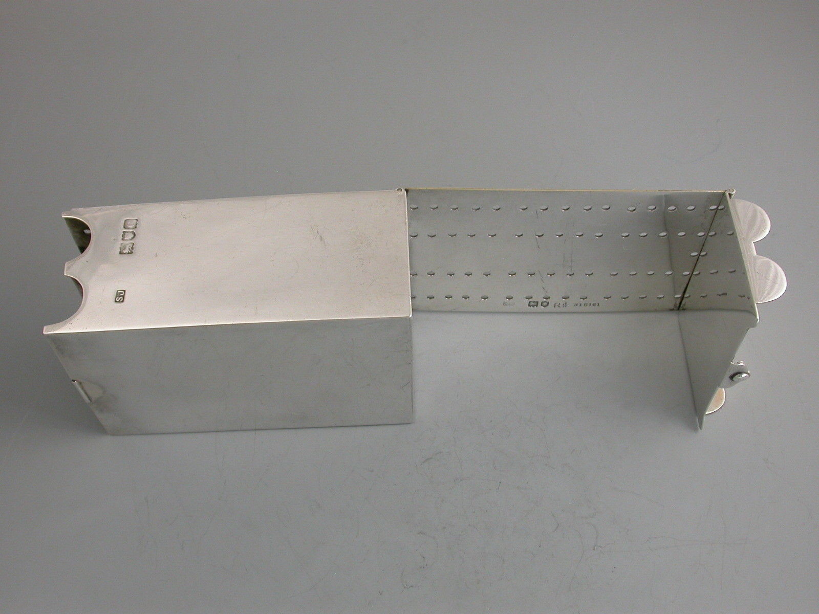 A rare Victorian silver combined Cribbage Board and Twin-Pack Card Box, the cover and side hinging open to form the gilded cribbage scoring board with drilled holes to accept the turned ivory pegs. The main body housing two packs of playing cards. Engraved with registered design number 315161.