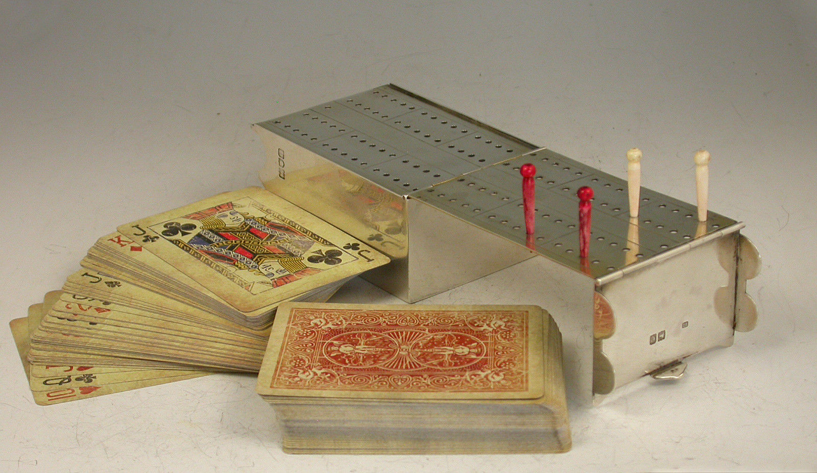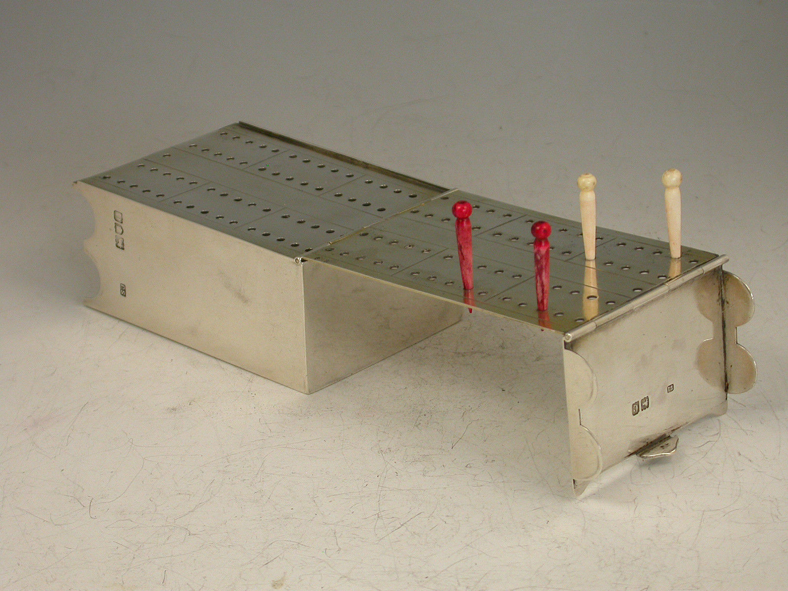 Victorian Silver Cribbage Board and Card Box