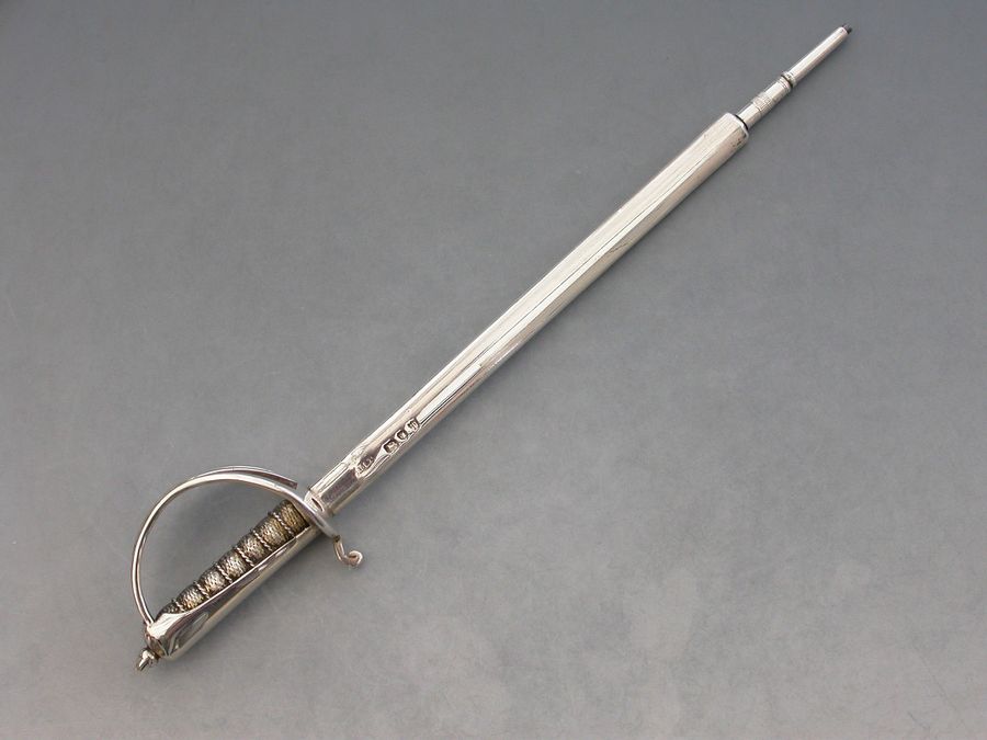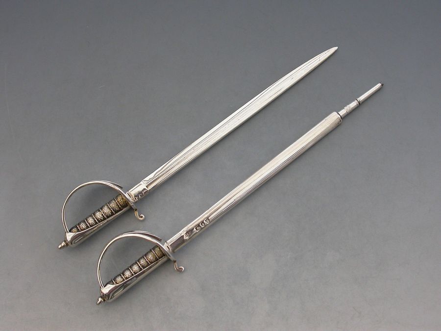 Victorian Silver Crossed Officers Dress Swords Desk Clip Propelling Pencil & Letter Opener