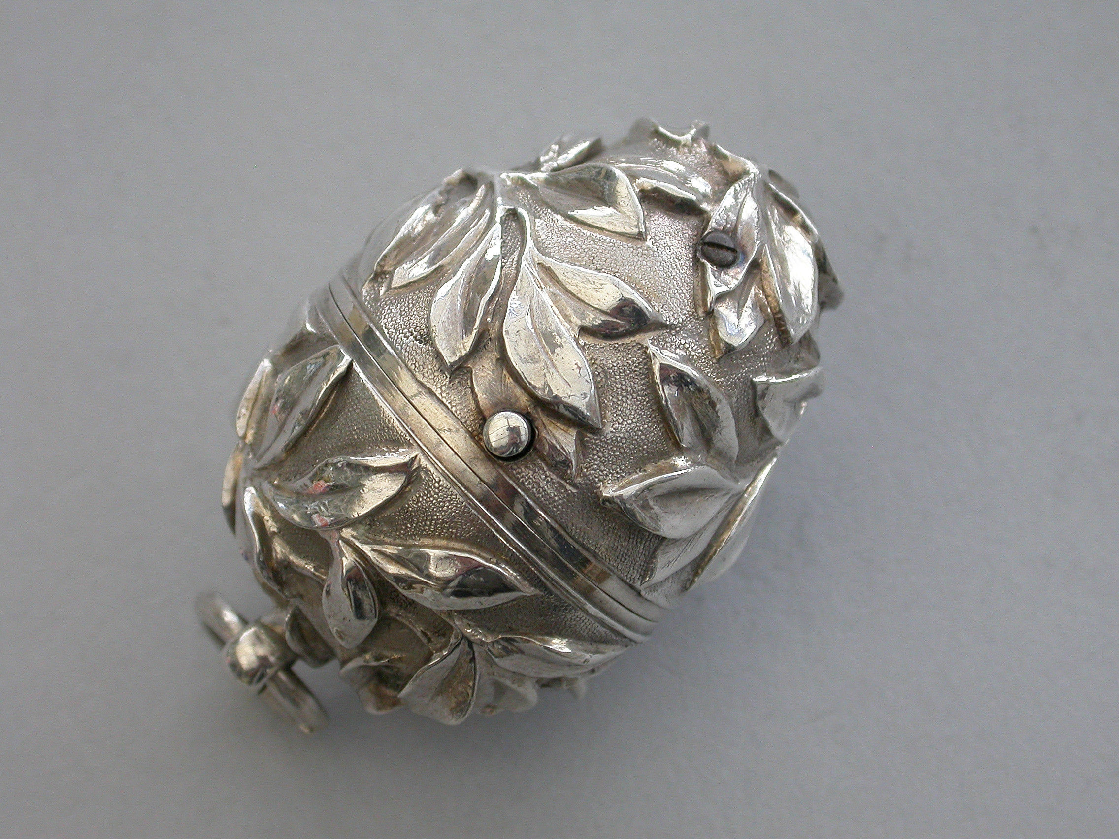 Victorian Silver Egg Shaped Sewing Etui Foliate Chased