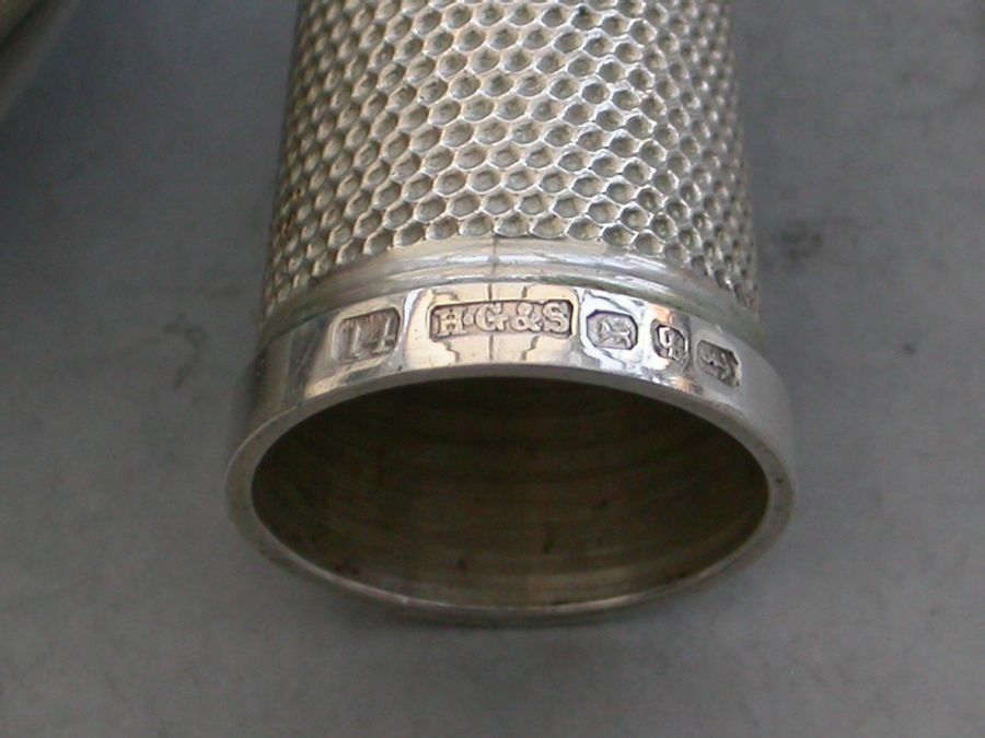 The silver thimble by Henry Griffith & Sons Ltd, Birmingham, 1890.