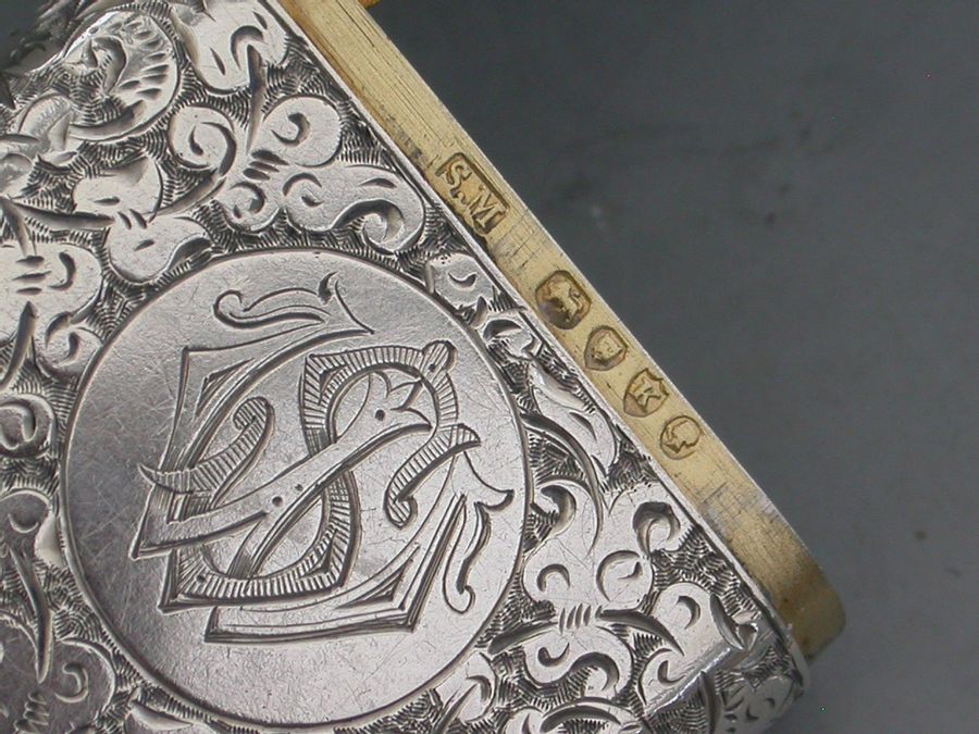 A fine quality Victorian silver Vesta Case of rounded rectangular form with sprung hinged lid and silver gilt interior, the body engraved with foliate scroll decoration, a circular cartouche to the front engraved with contemporary initials.