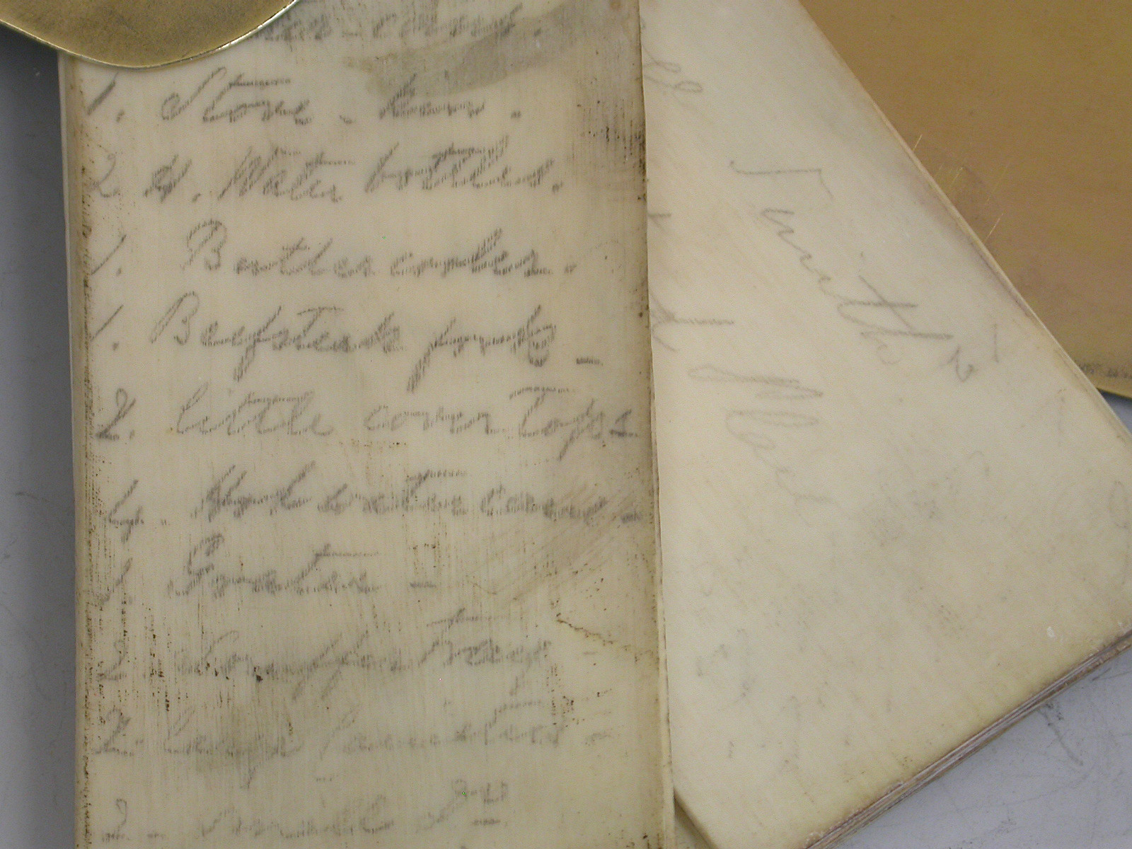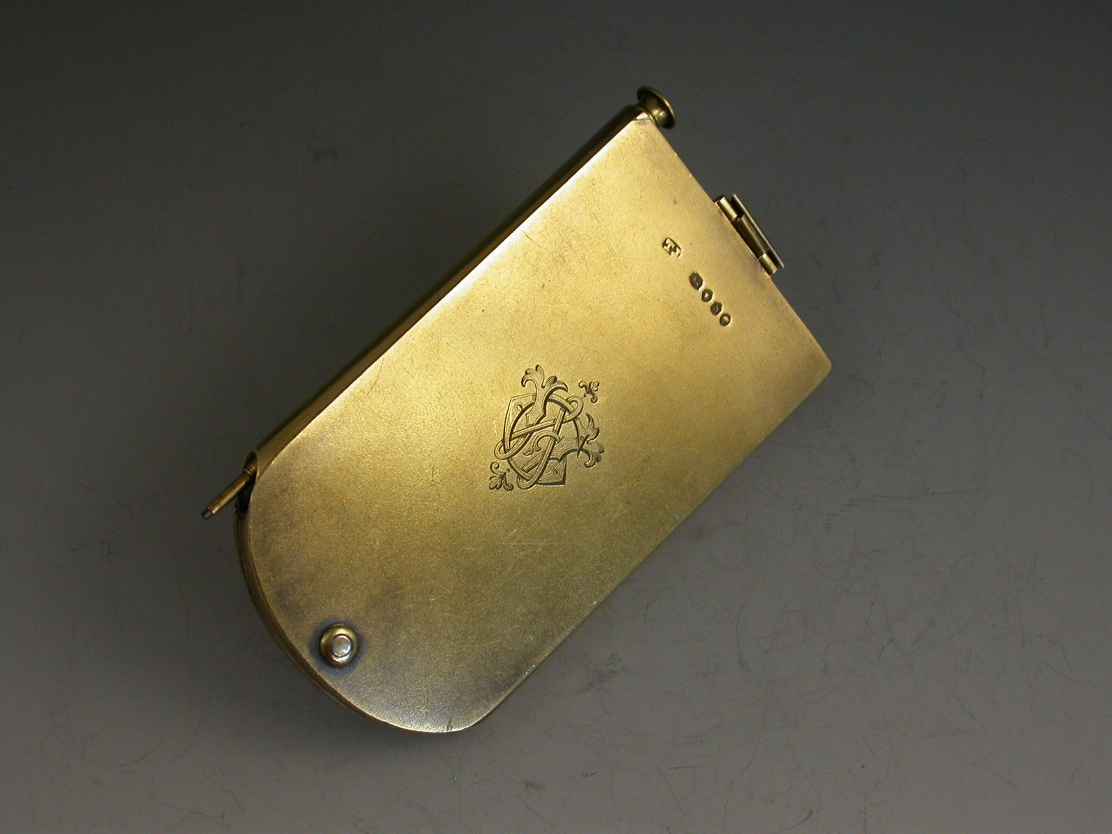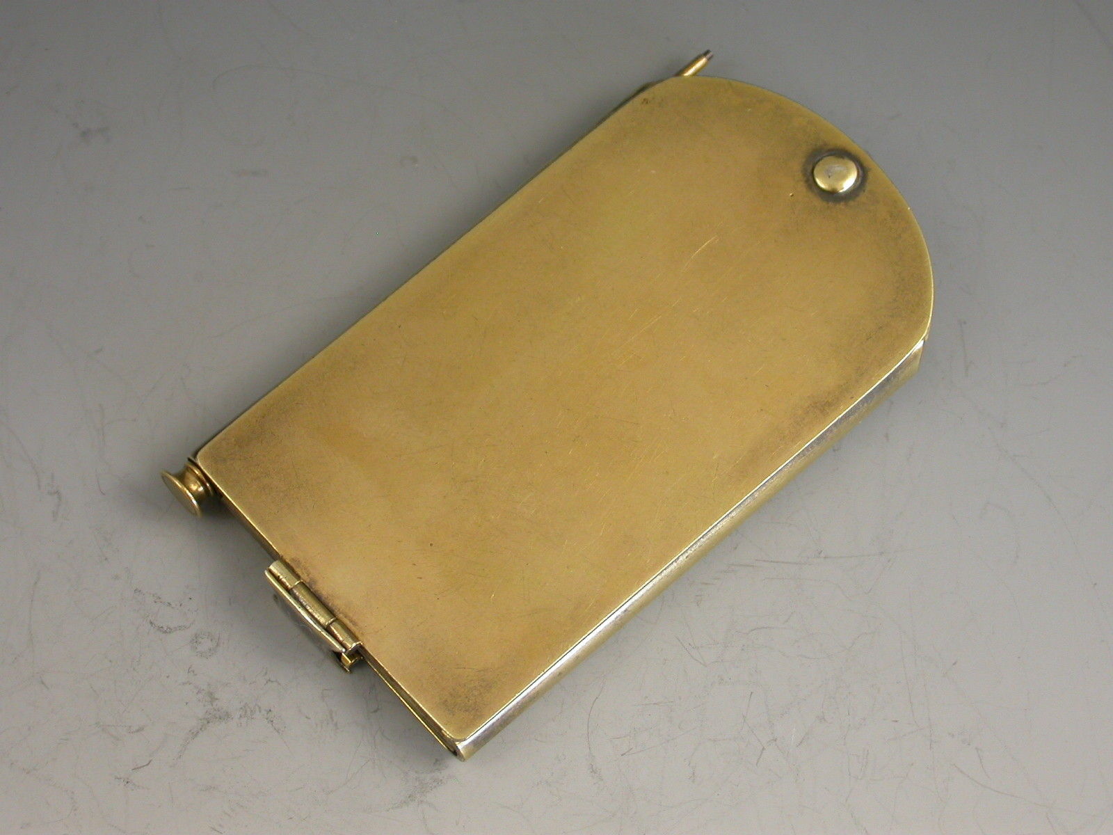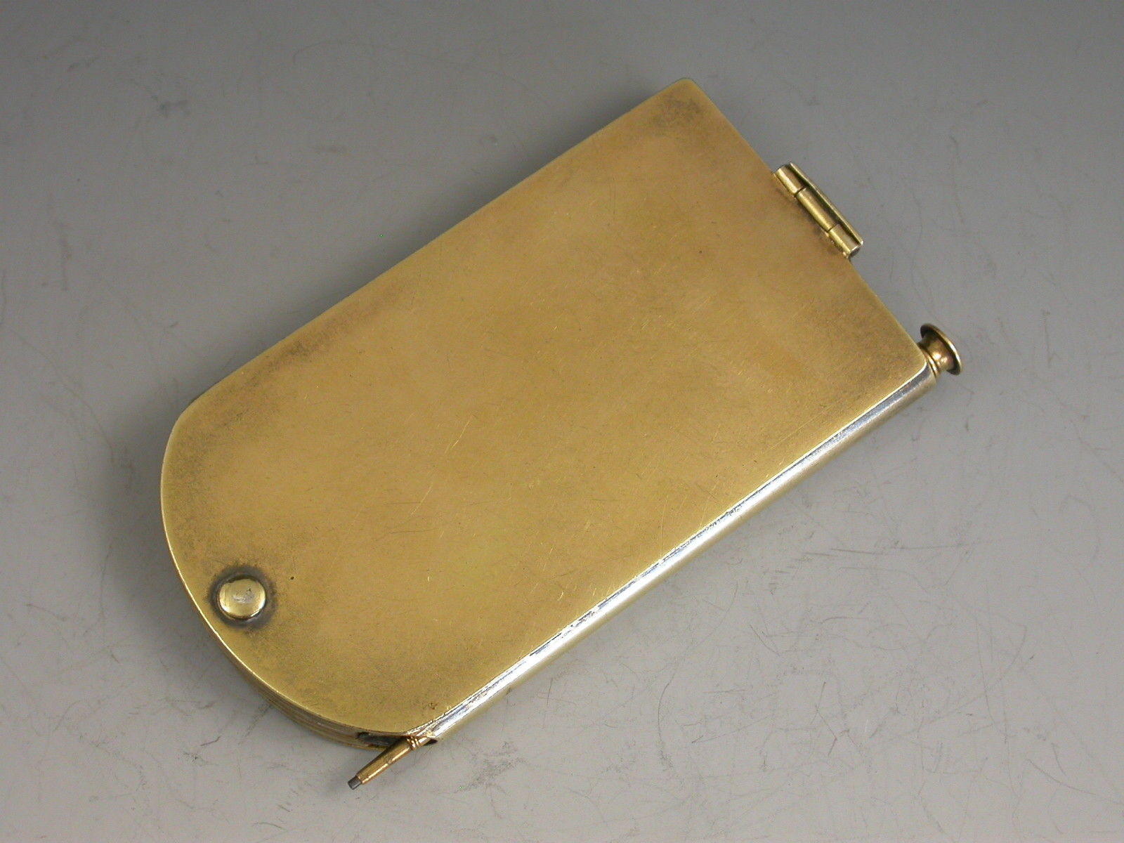 A fine quality Victorian silver gilt Aide Memoire of rounded rectangular form, the plain silver gilt covers opening on a swiveling pin and secured by a hinged clasp. The interior complete with the original seven ivory leaves (one for each day of the week) and retaining some original penciled notes. Complete with engine turned propelling pencil. The cover engraved with a monogram.