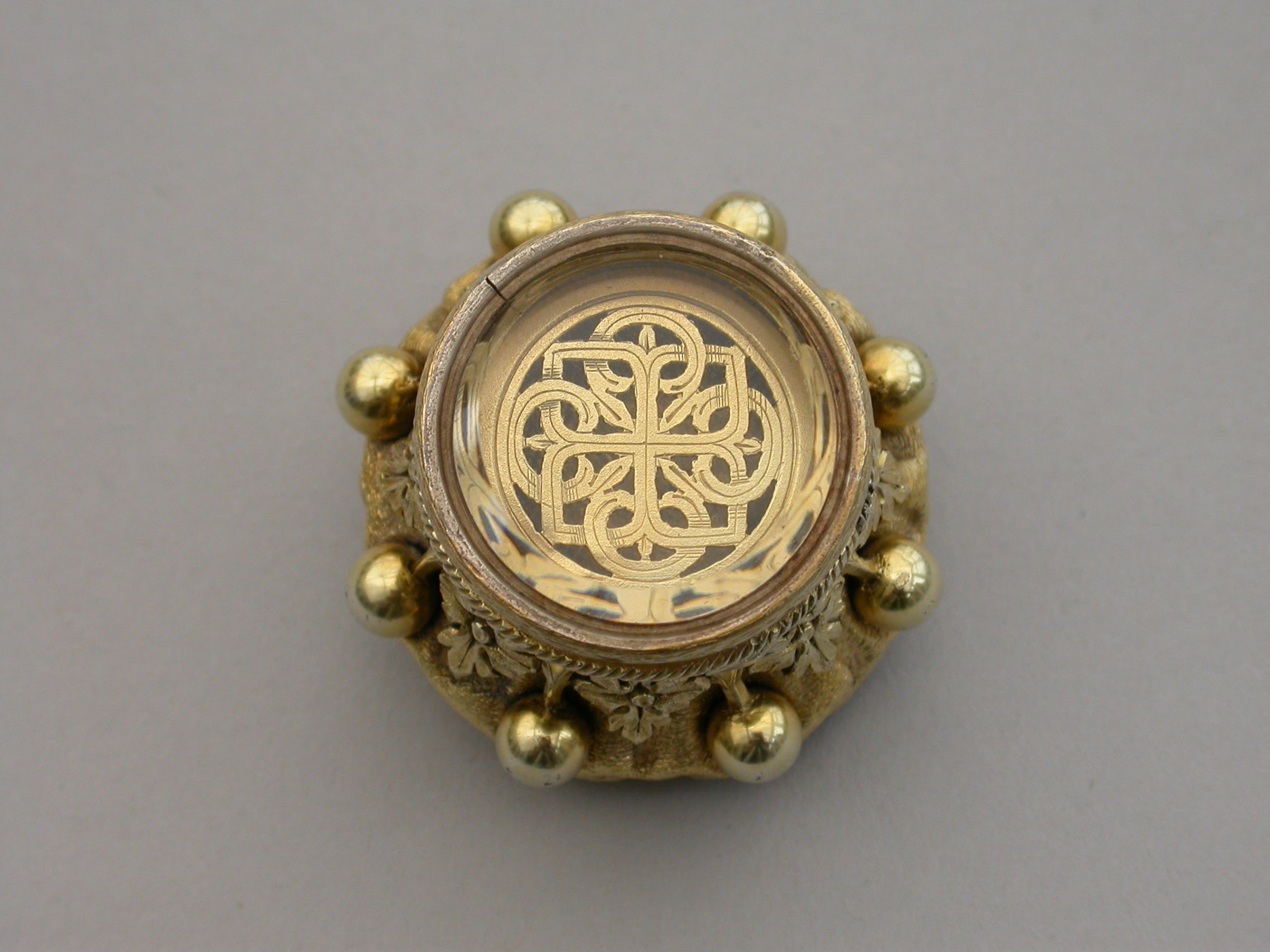 Victorian Silver Gilt Earls Coronet Vinaigrette on Velvet Cushion