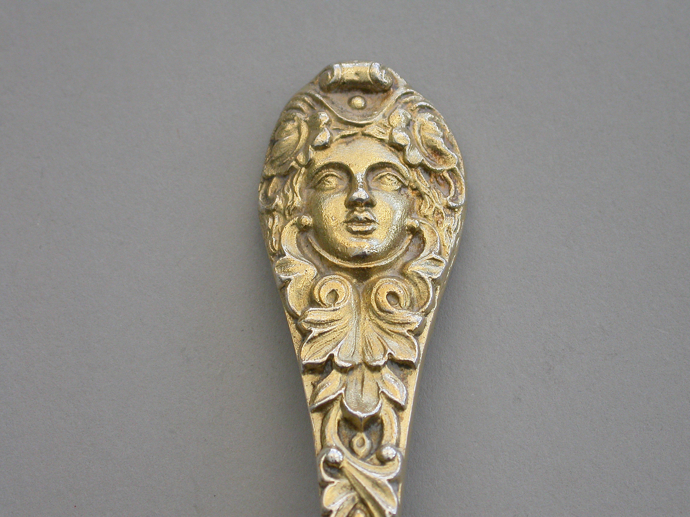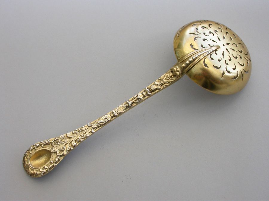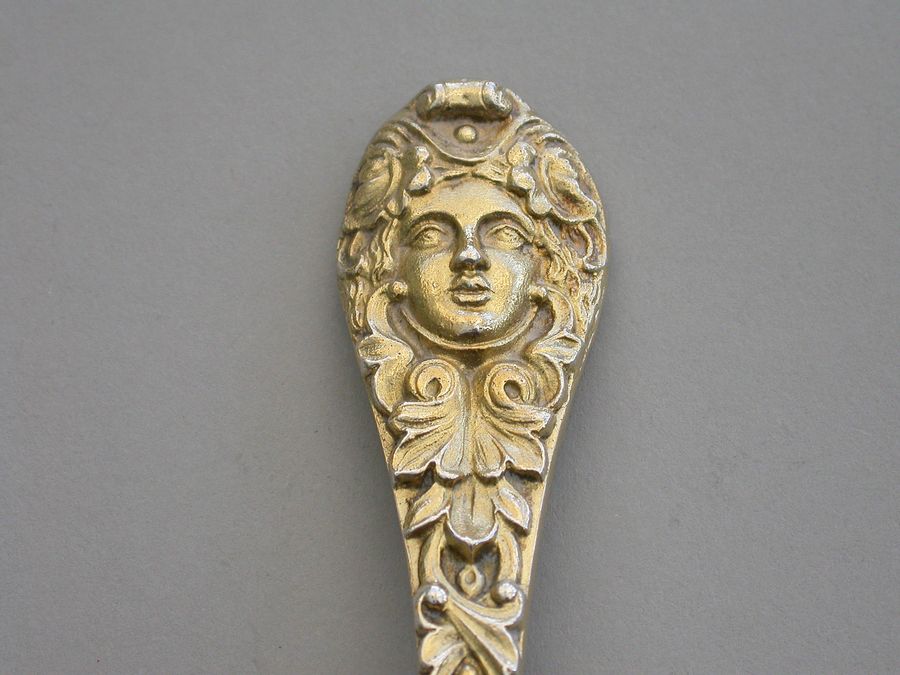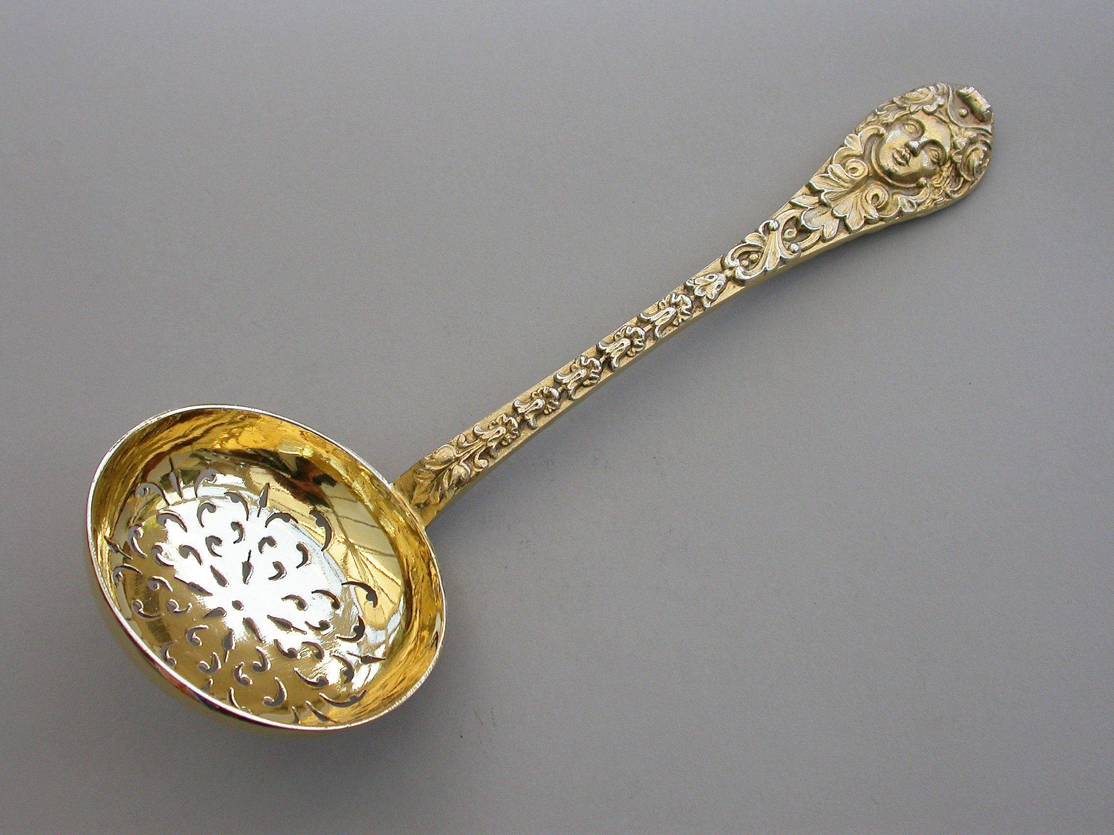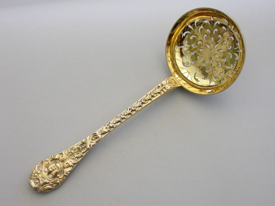 Victorian Silver Gilt Female Mask Head Sugar Sifter Ladle