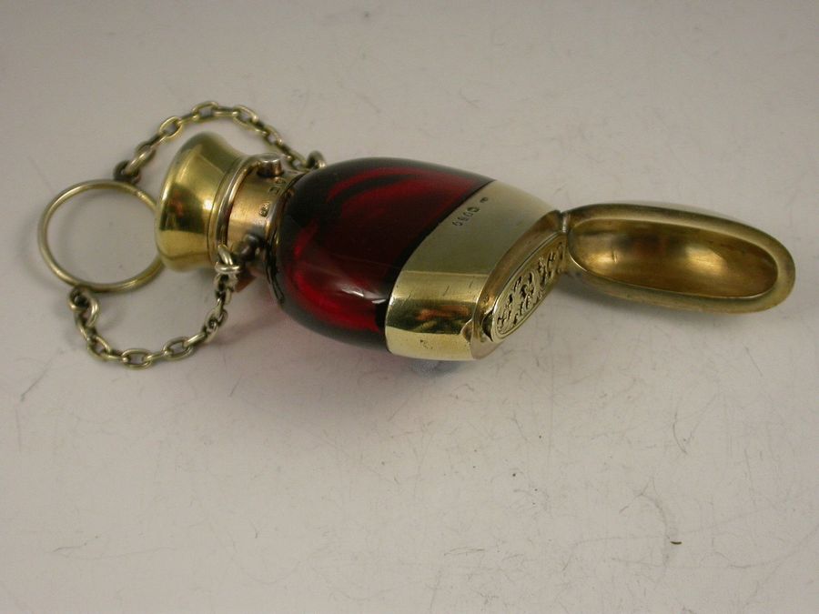 Victorian Silver Gilt Mounted Ruby Glass Scent Bottle Vinaigrette
