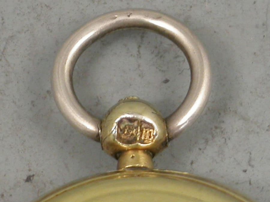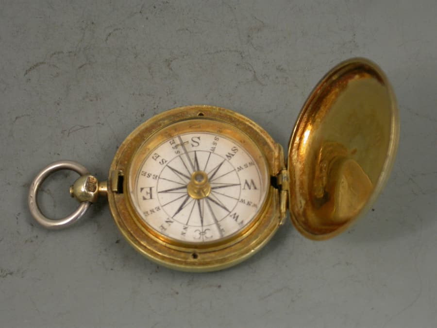 A good Victorian silver gilt Compass of pocket watch form, the plain circular case with reeded decoration and engraved with contemporary initials to an oval cartouche. White enamel dial.