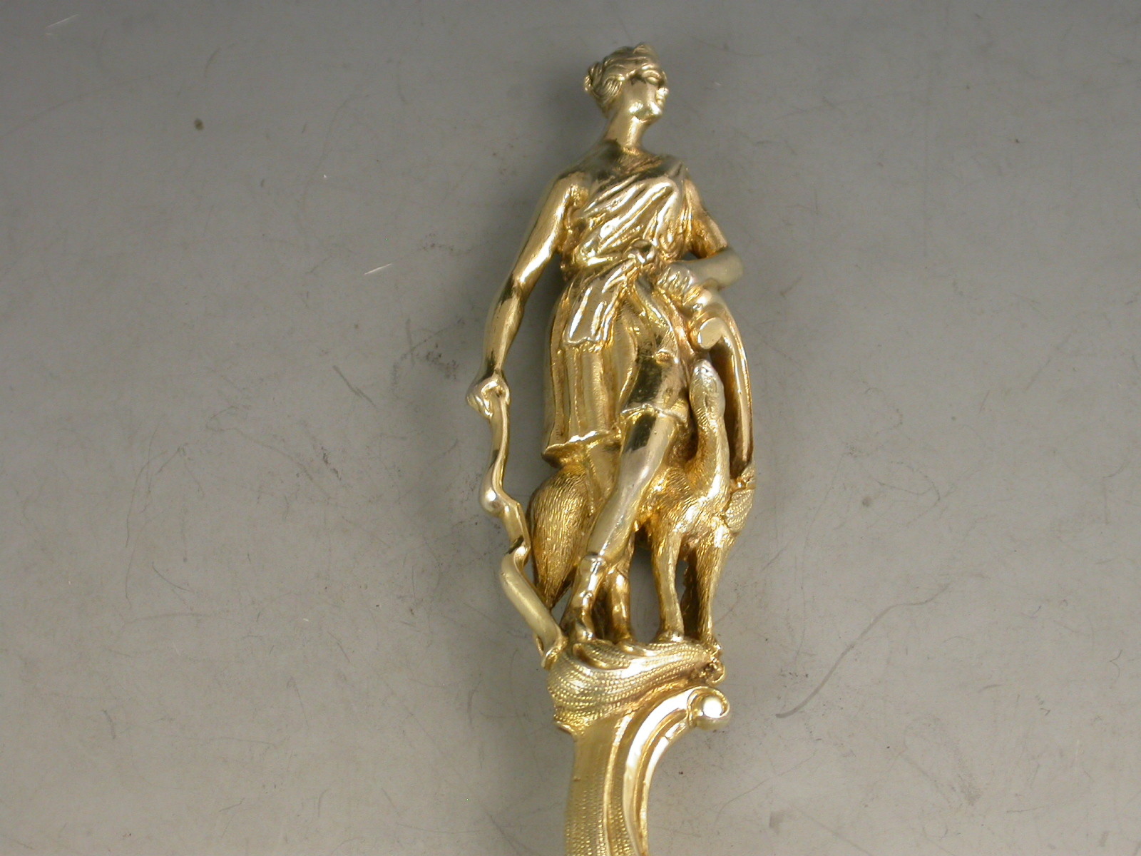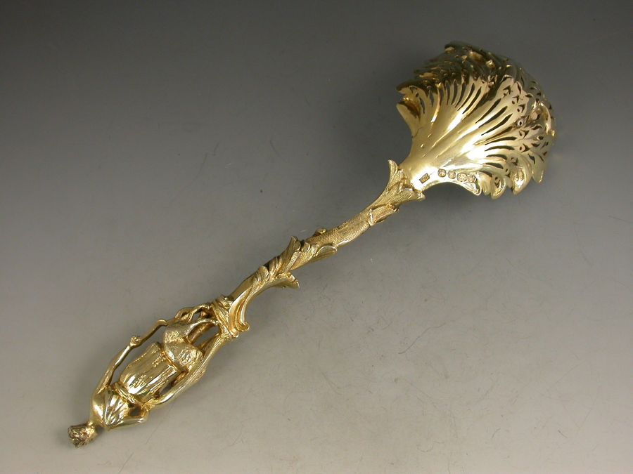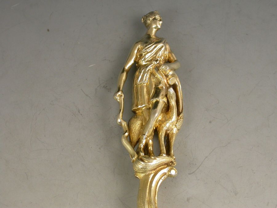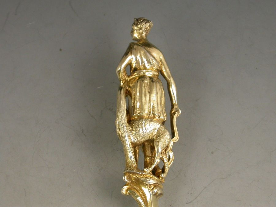 Victorian Silver Gilt Rococo Sifter Spoon 'Diana The Huntress'