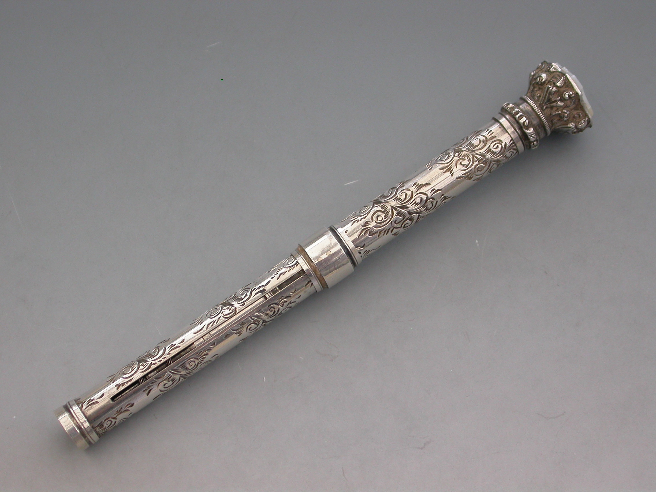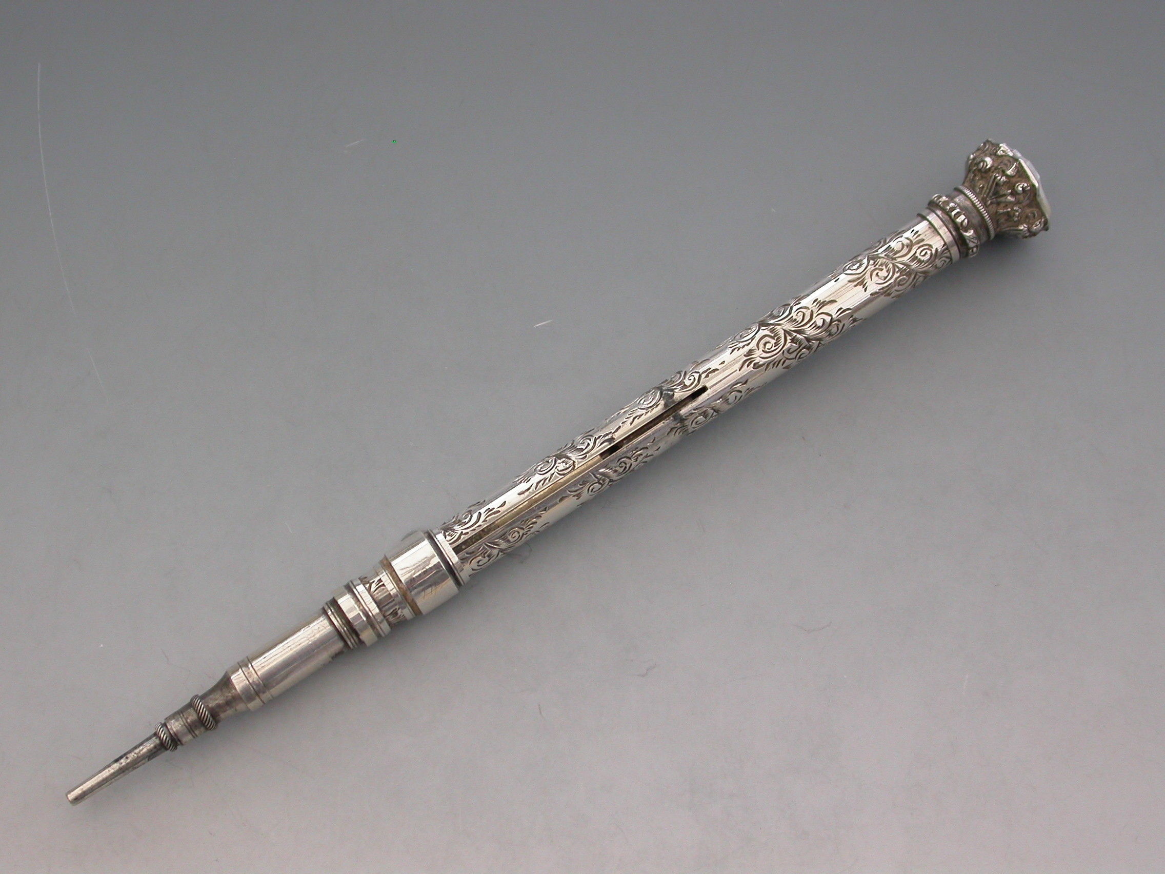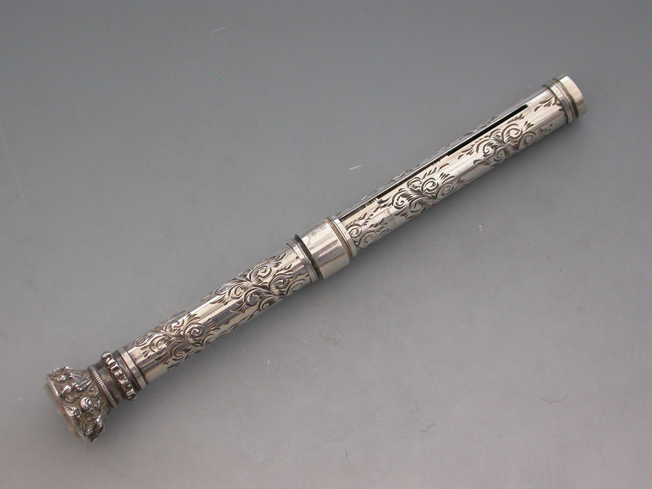 Victorian Silver Hand Engraved Sliding Propelling Pencil
