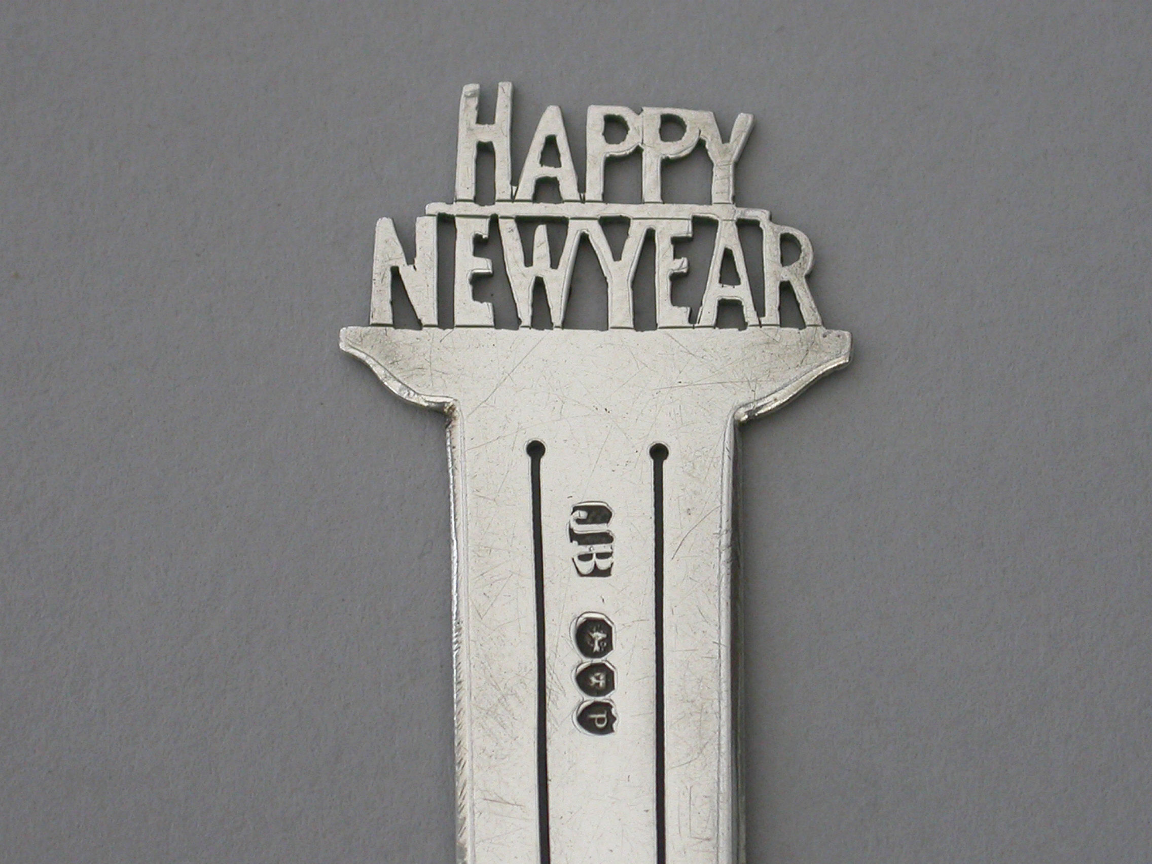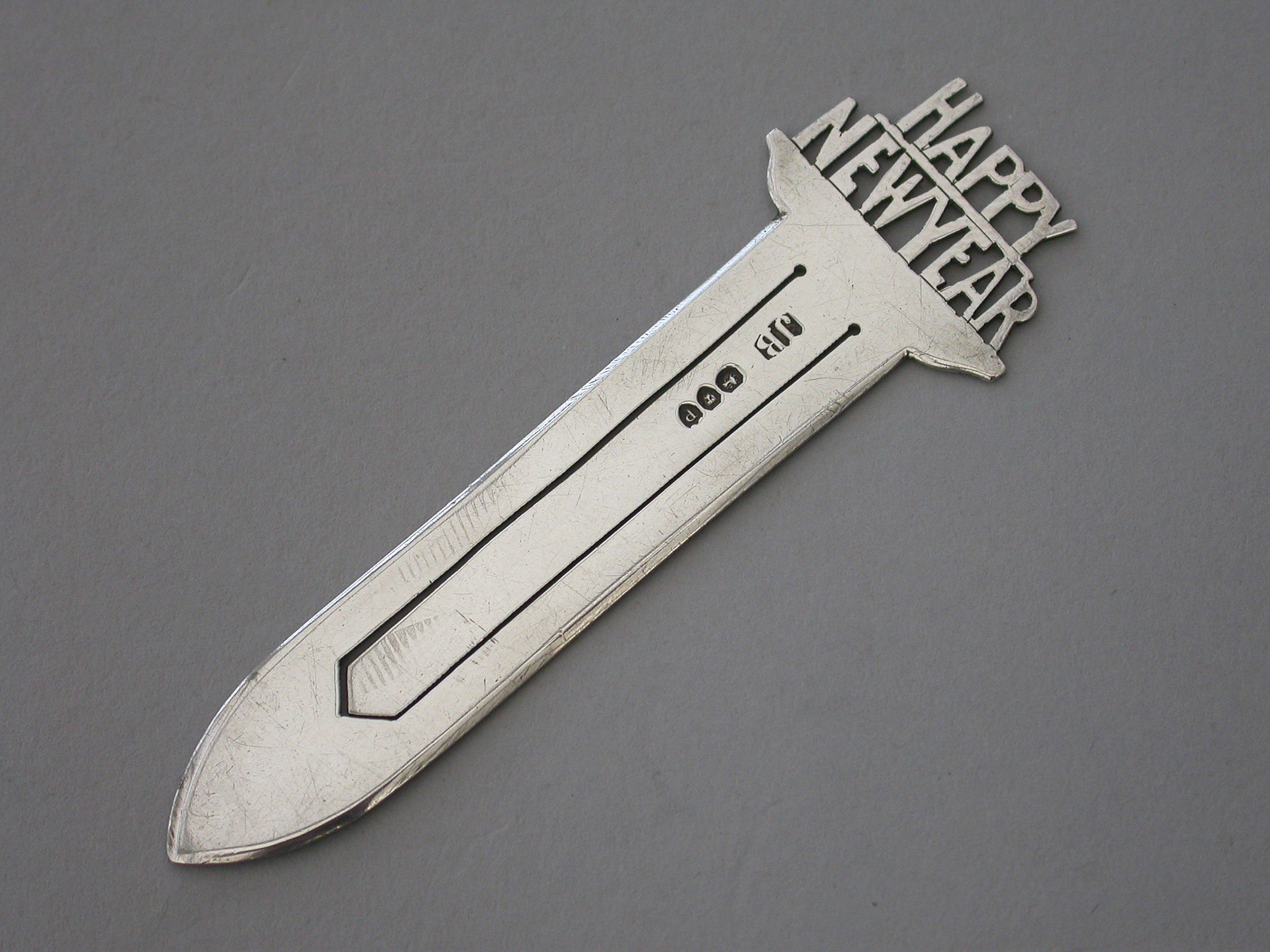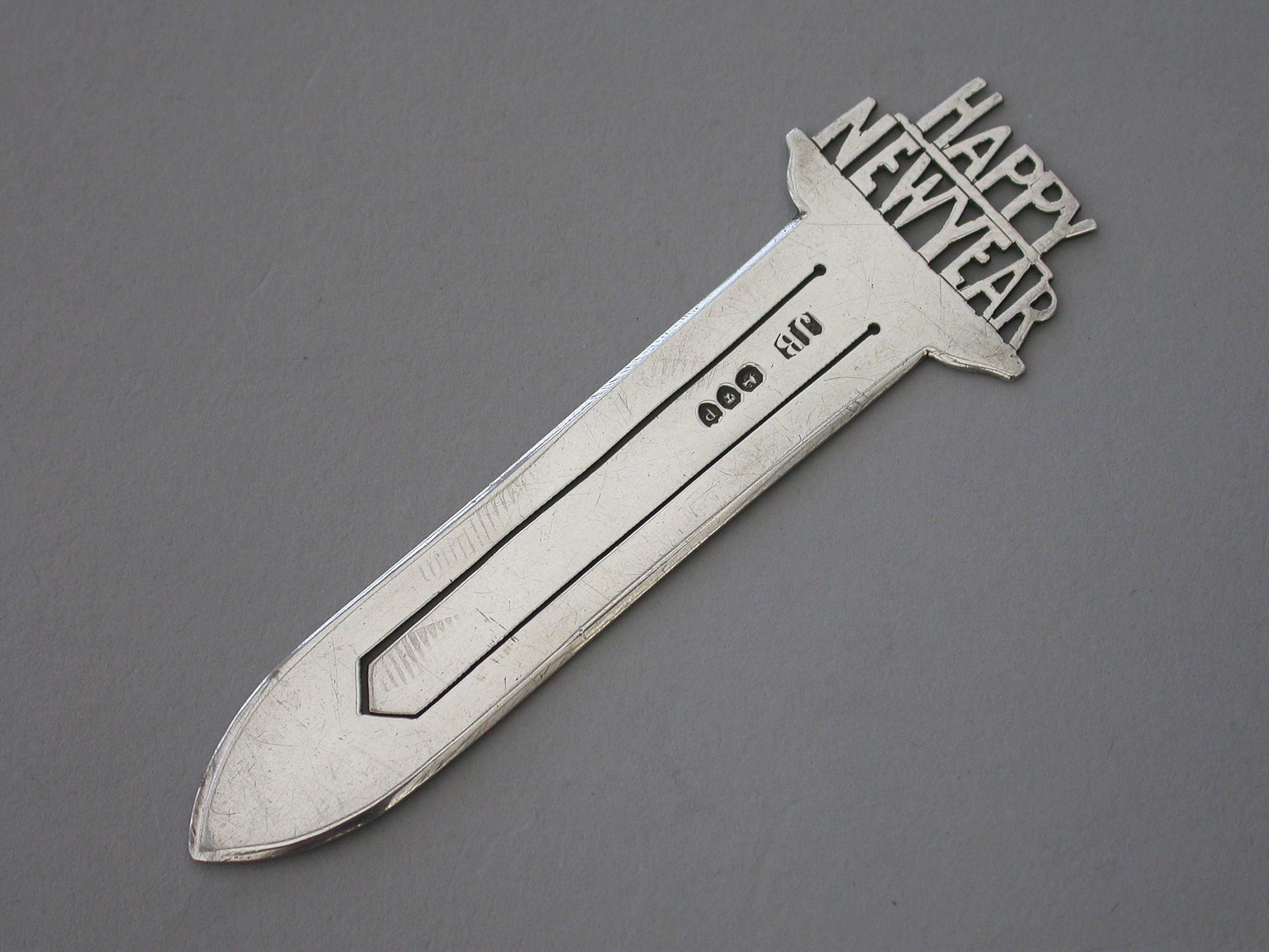 A Victorian silver Bookmark, the terminal with the cut-out legend - ""Happy New Year"".