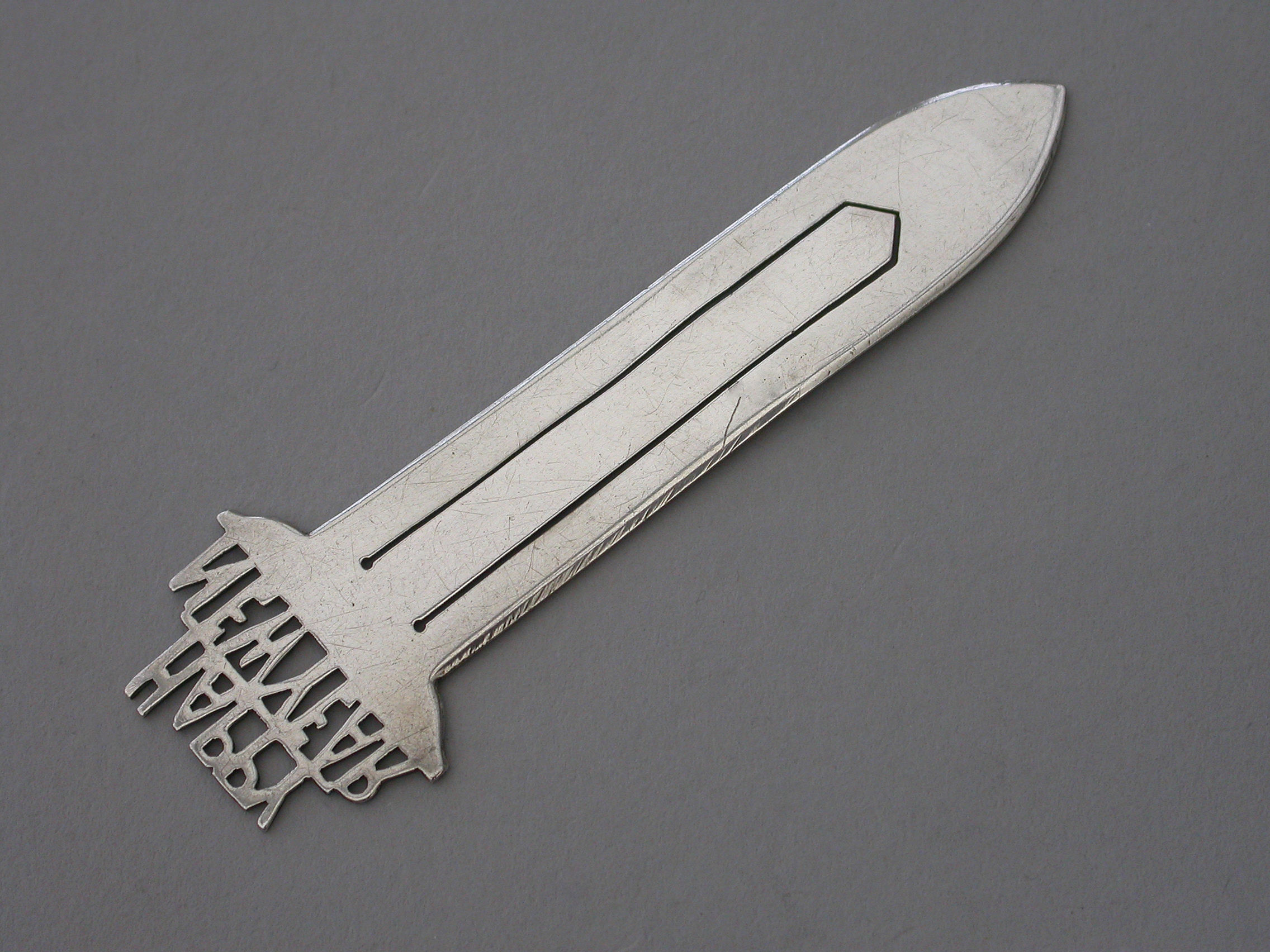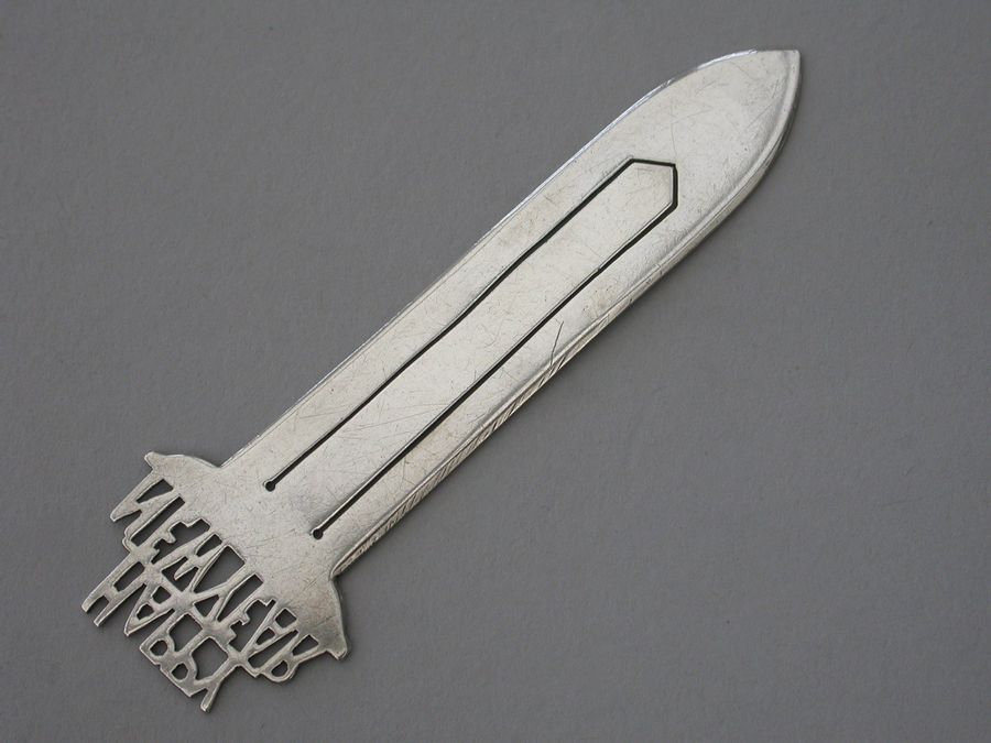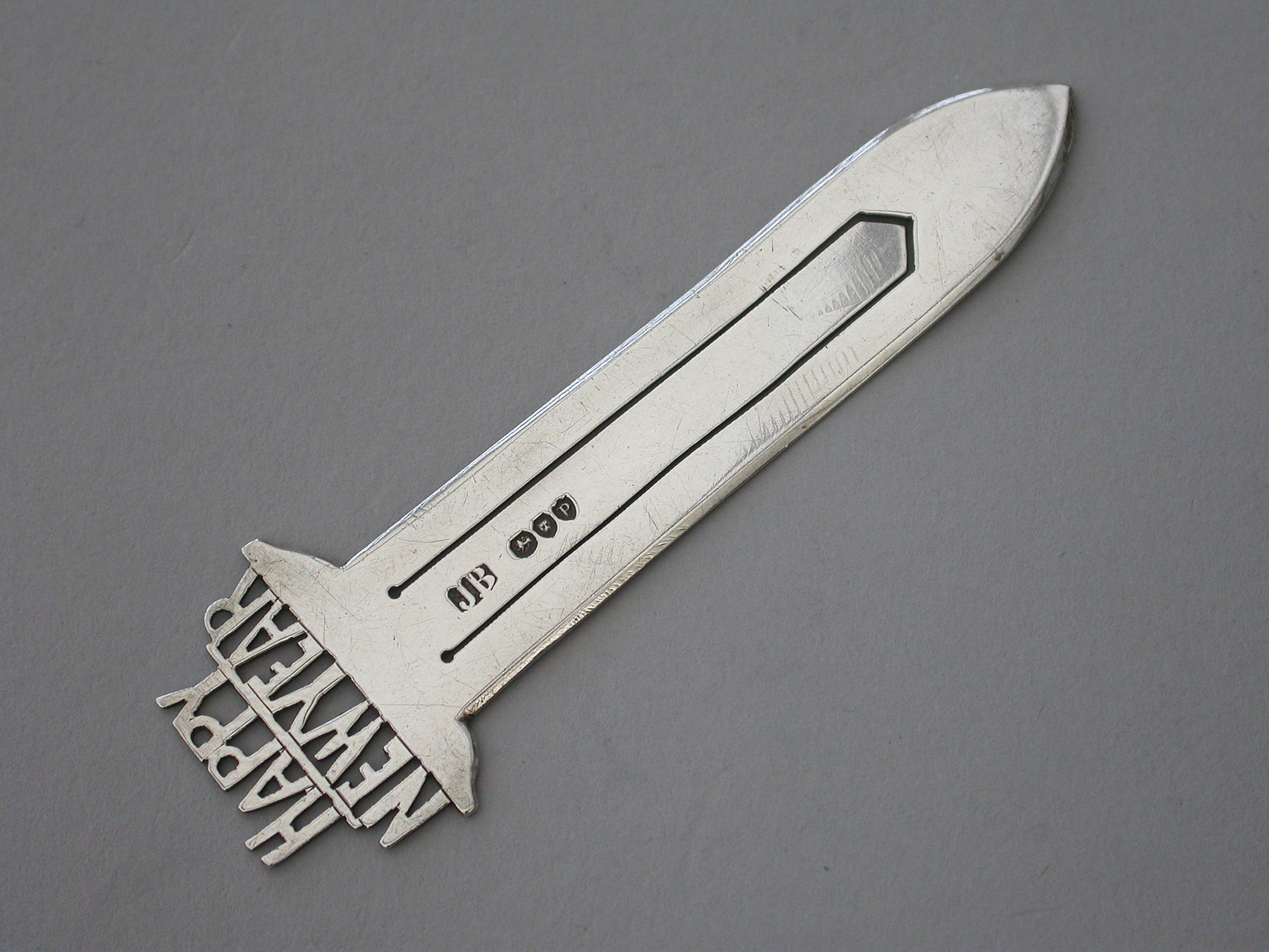 A Victorian silver Bookmark, the terminal with the cut-out legend - ""Happy New Year"".