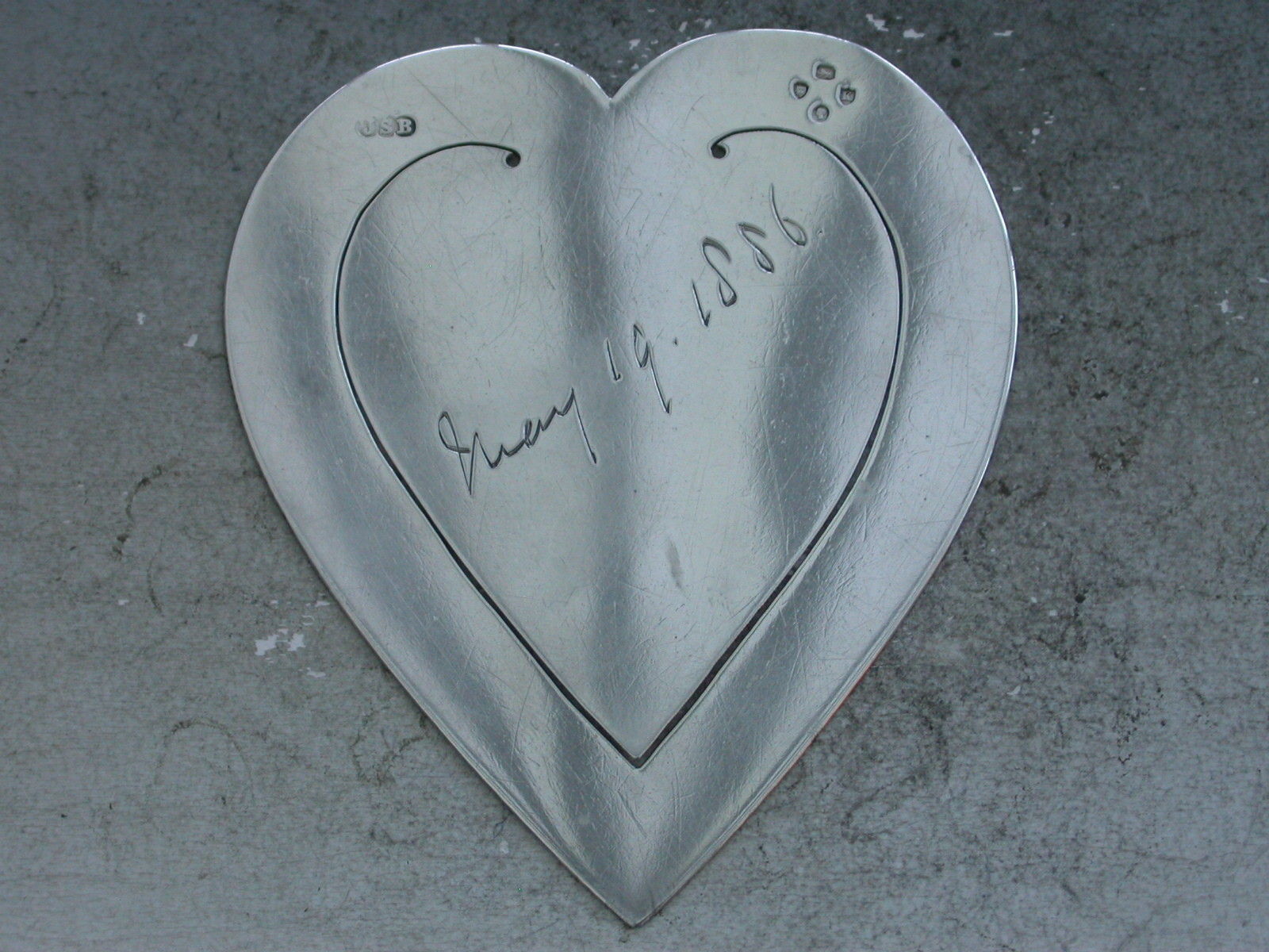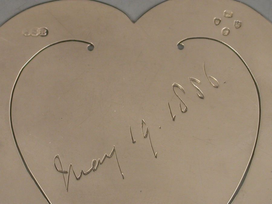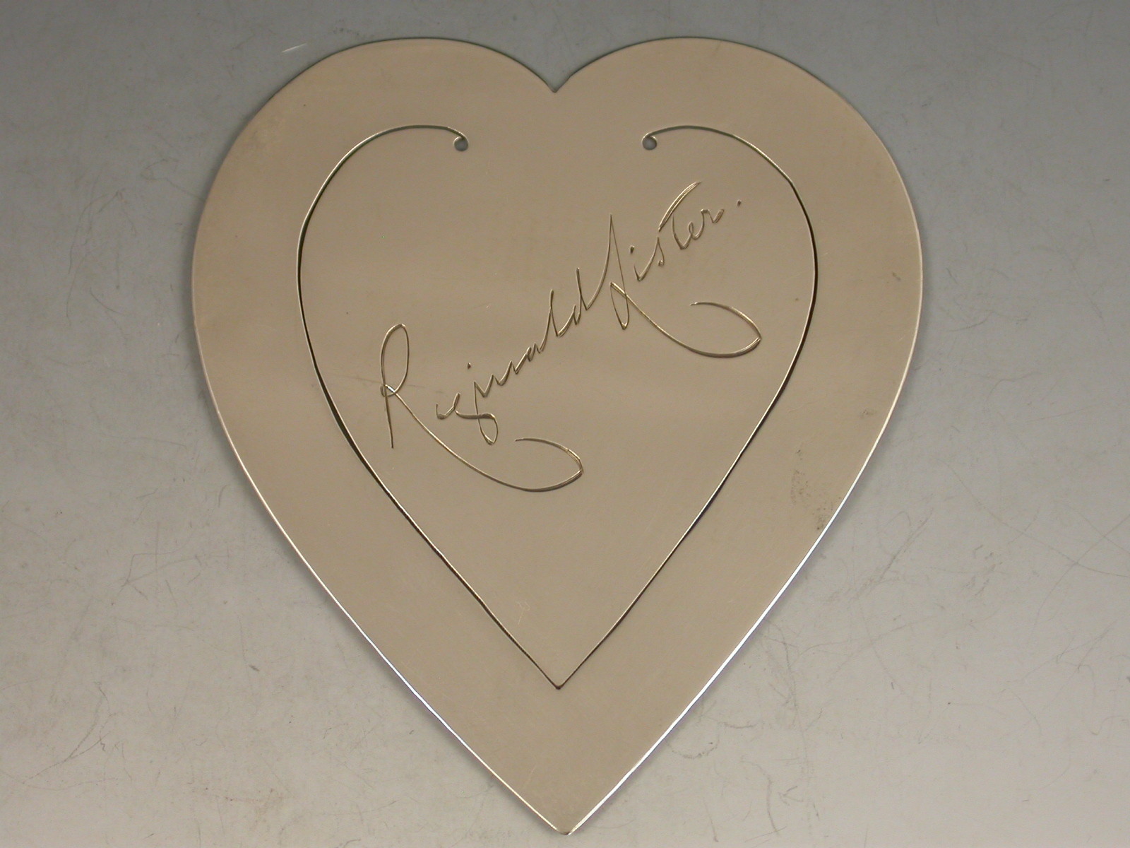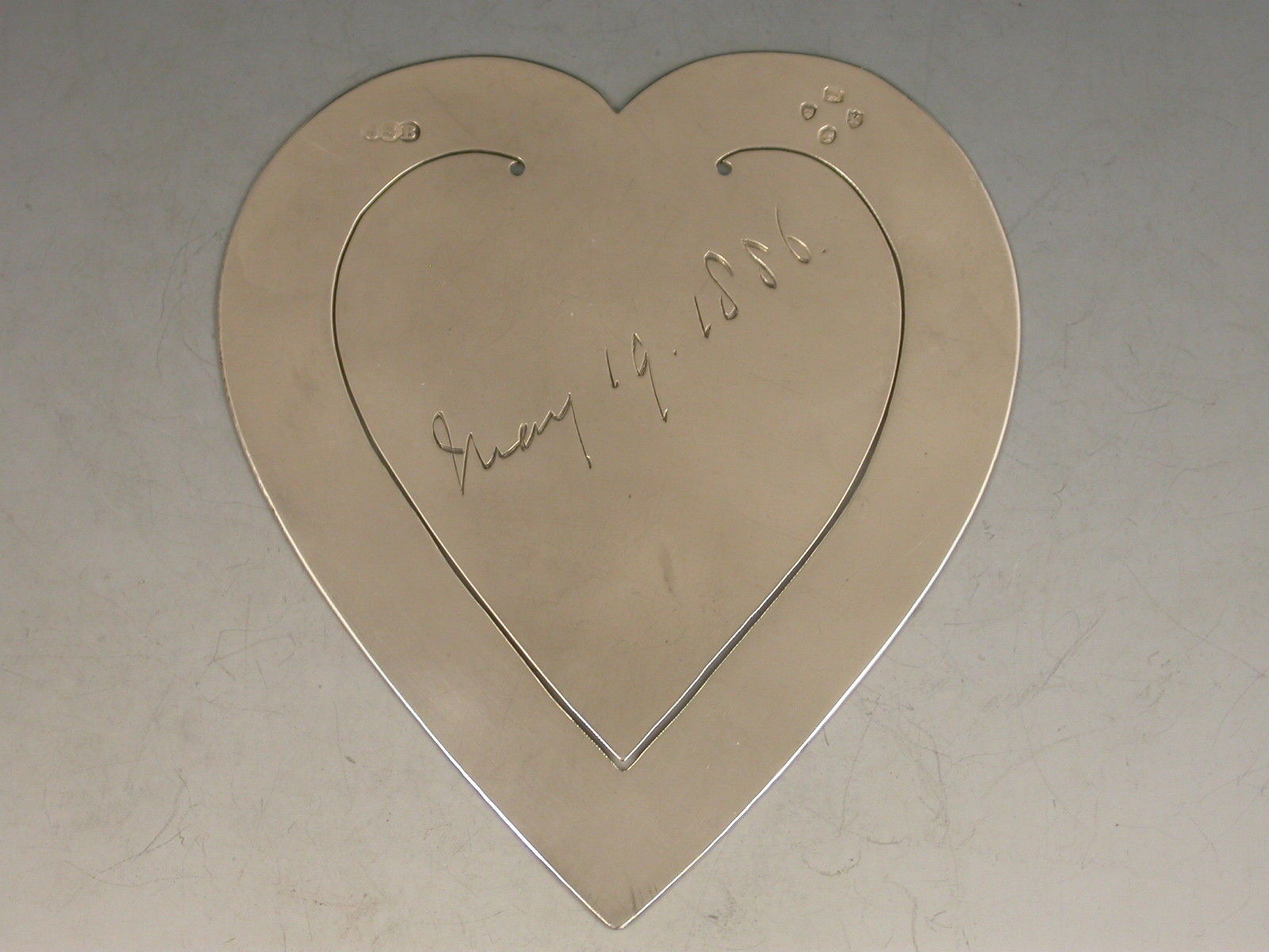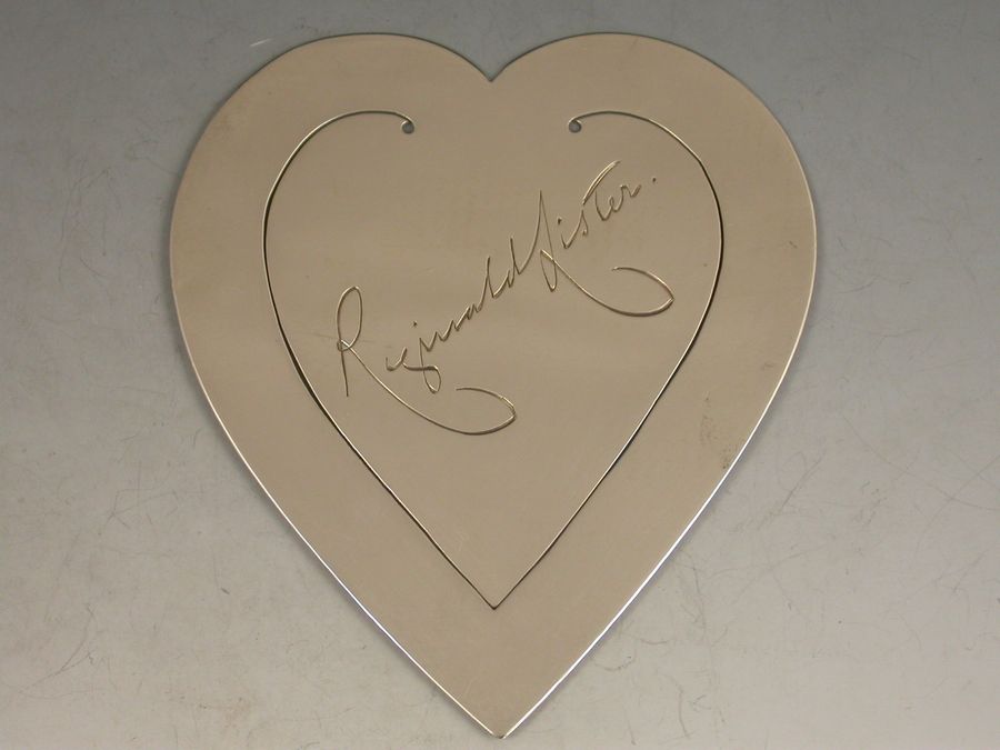 A fine Victorian silver large heart shaped Bookmark, commemorating the 21st birthday of (Sir) Reginald Lister CVO KSMG (later Knighted, of the Diplomatic Service) in 1886. One side engraved with his facsimile signature and the other with the date 19th May 1886.