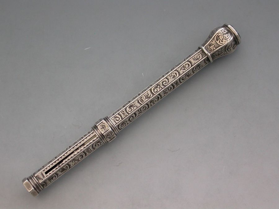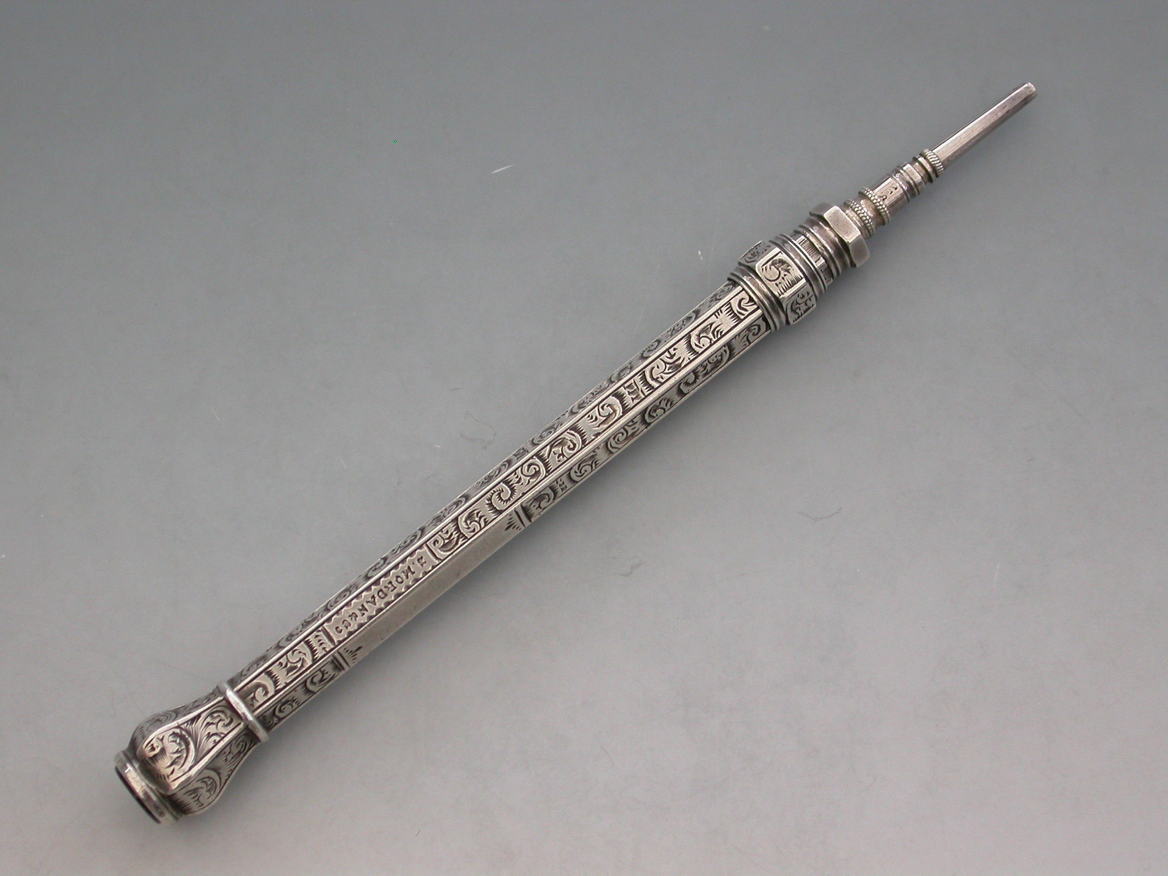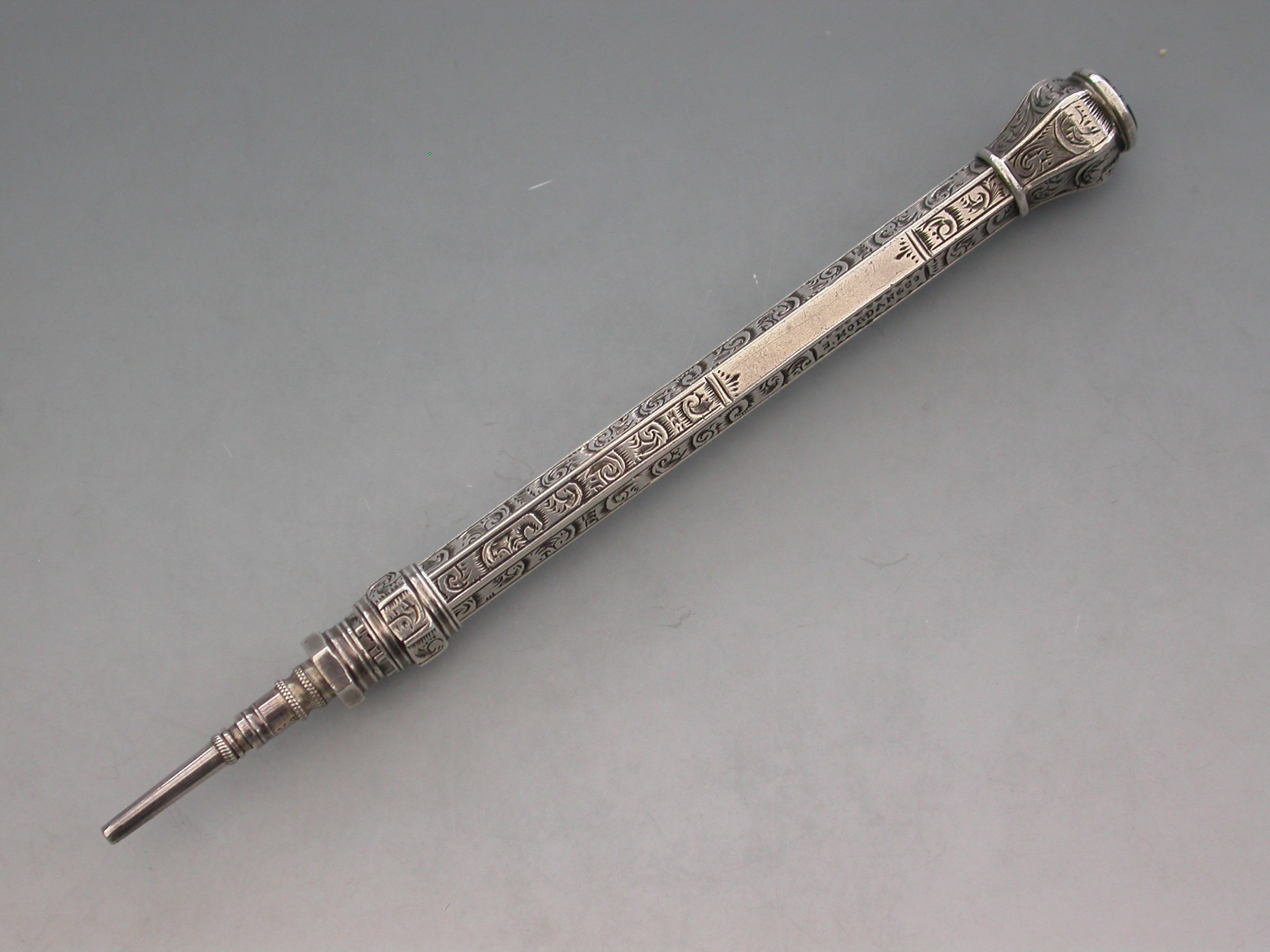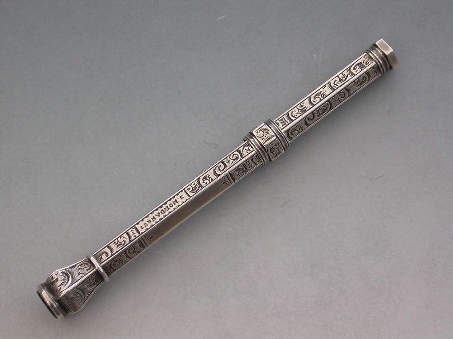 Victorian Silver Hexagonal Hand Engraved Propelling Pencil
