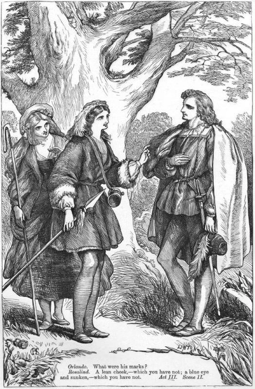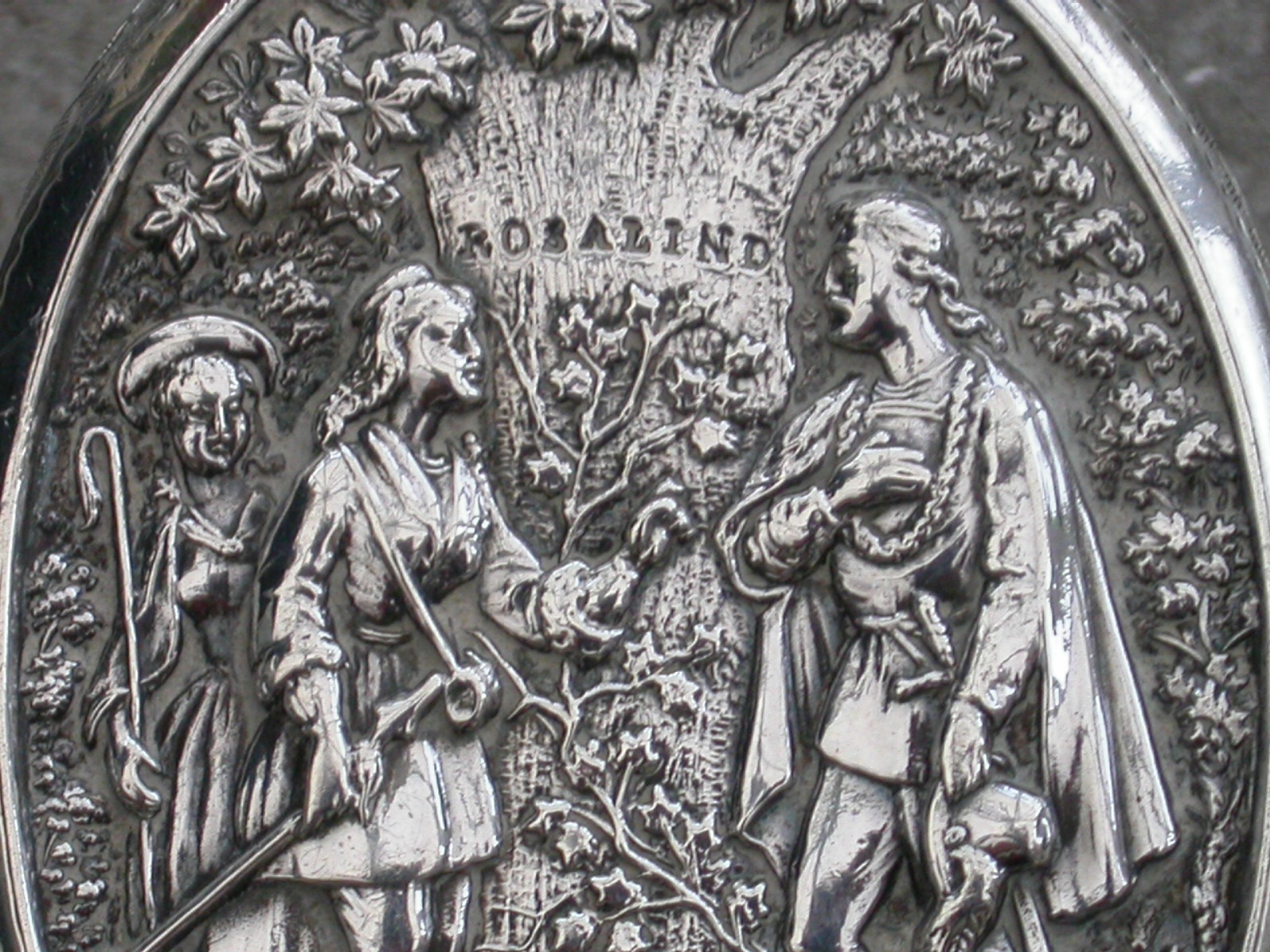 The panel depicts Rosalind, Celia and Orlando from Act 3, Scene 2 in Shakespeare's ""As You Like It"".
