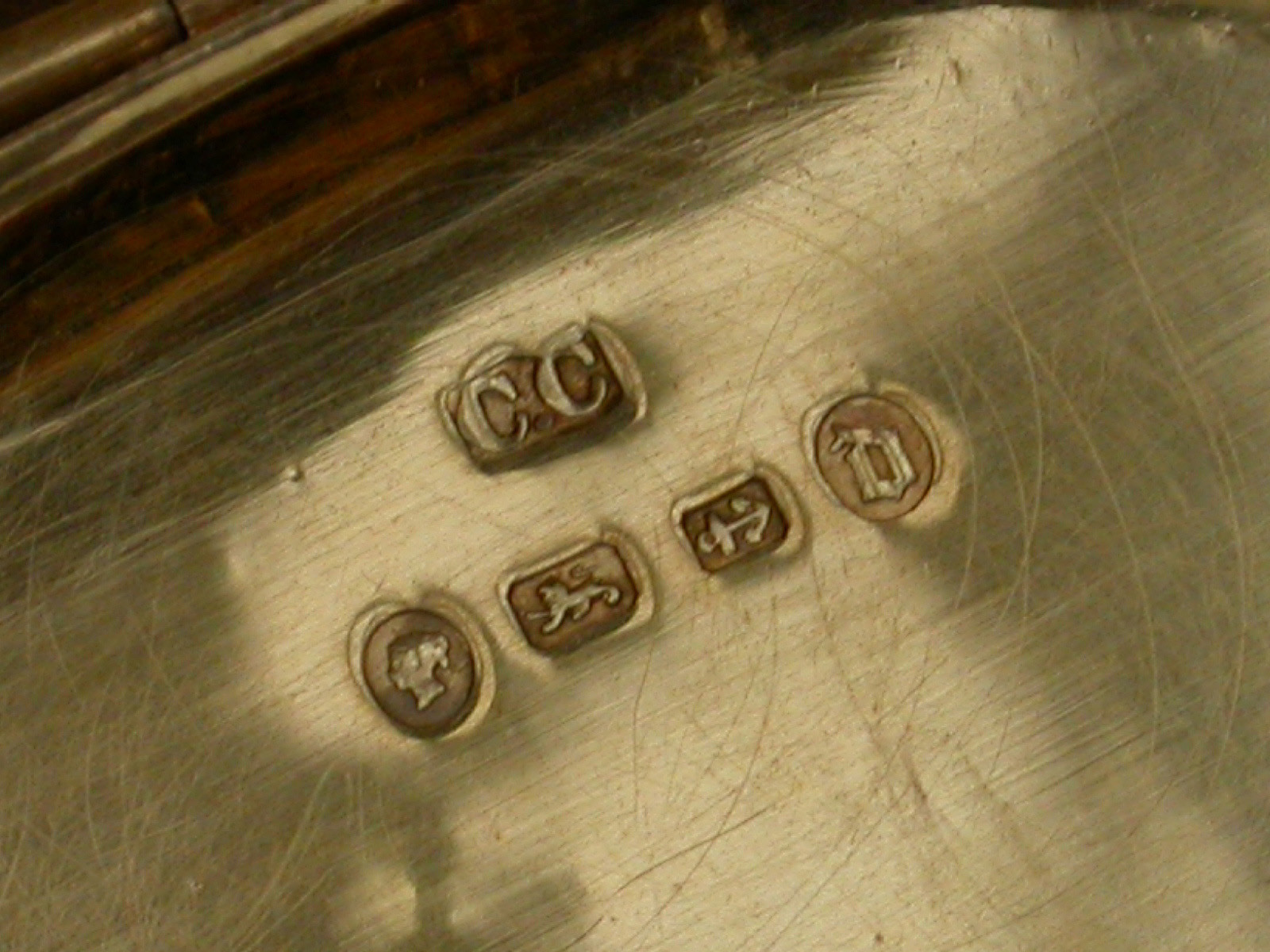By Cohen Hewer, Cheshire, Birmingham, 1878. The lid also stamped with a diamond registration mark for 8th April 1878.