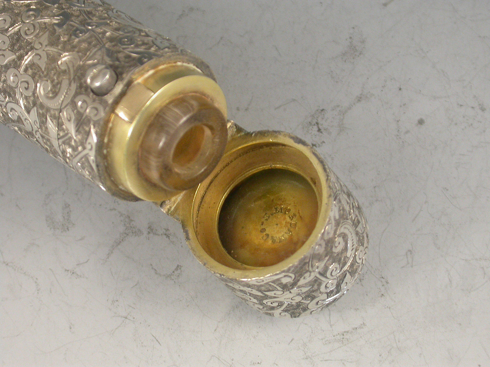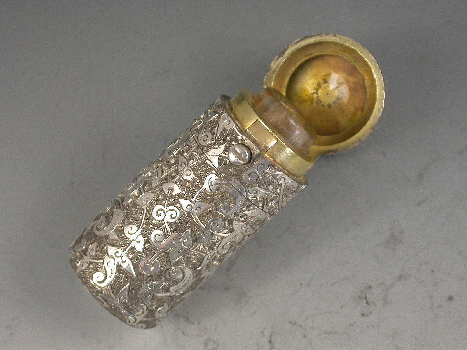 Victorian Silver Leaf & Scroll Engraved Scent Bottle