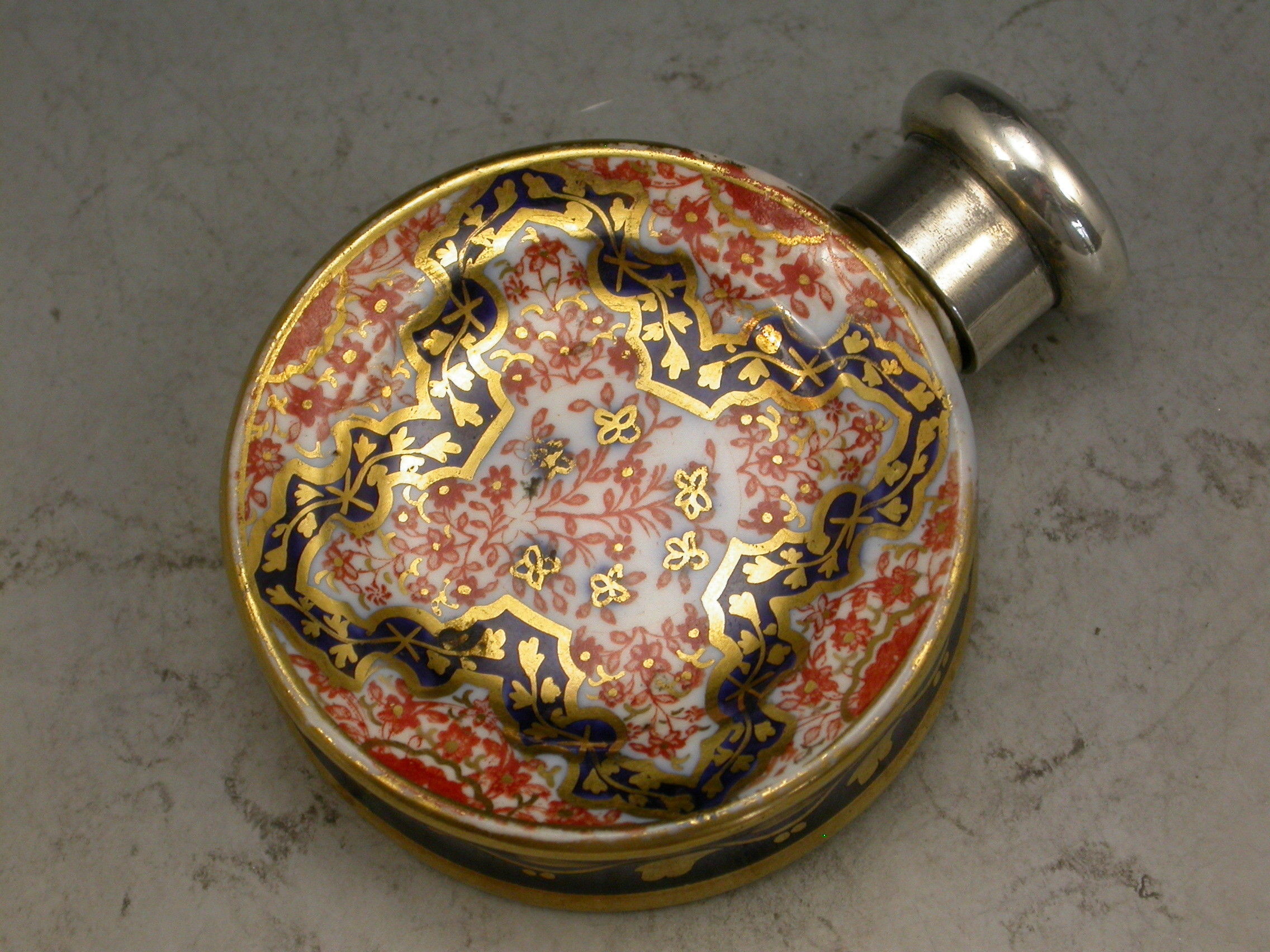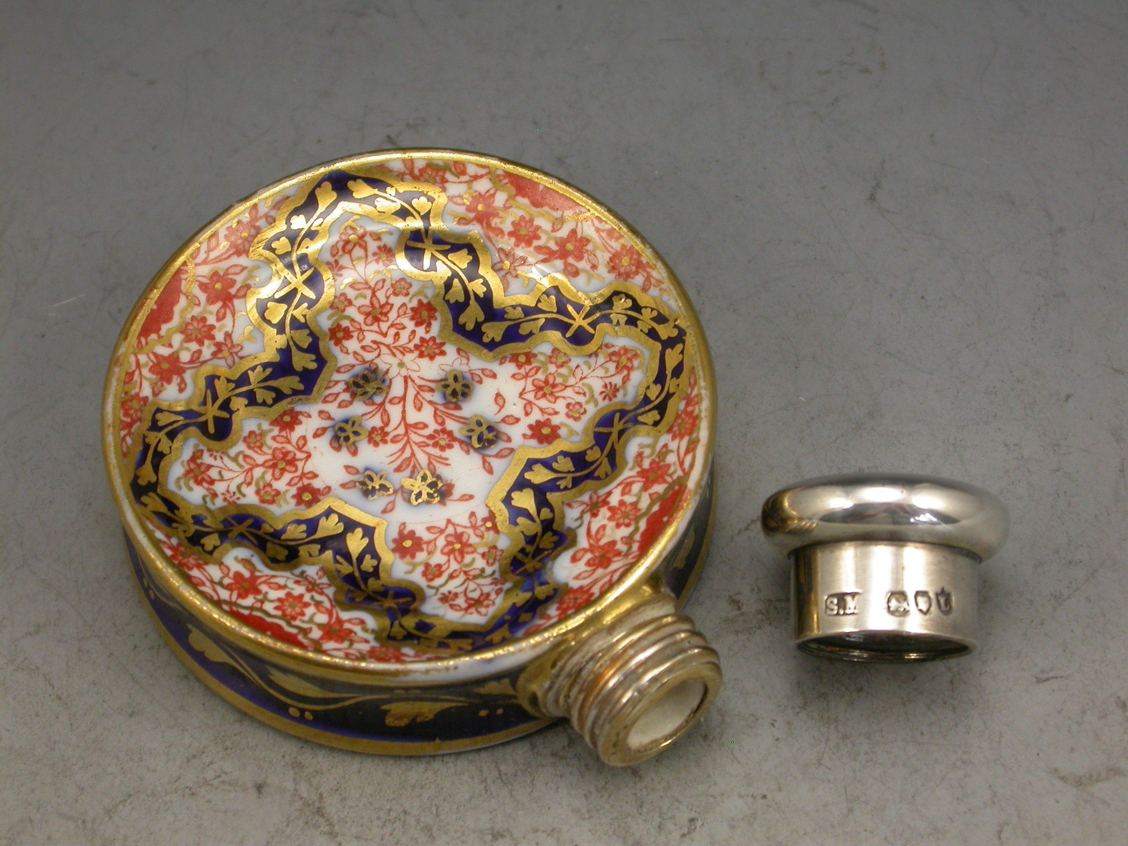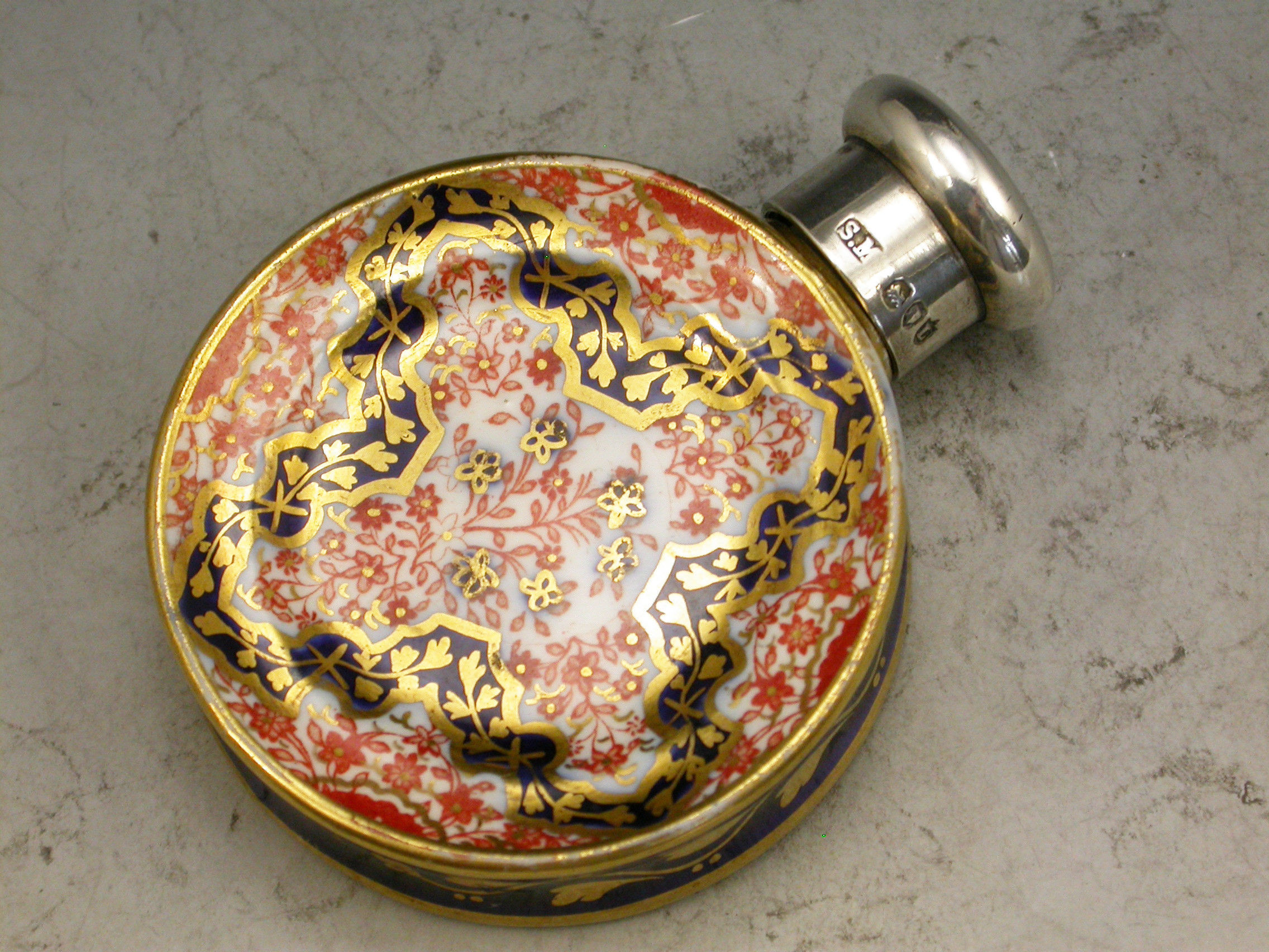 Victorian Silver Mounted Imari Plate Scent Bottle