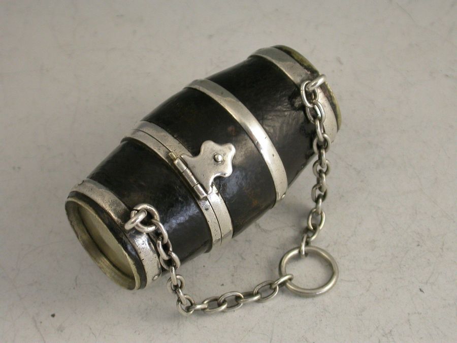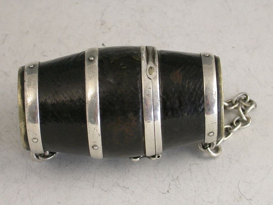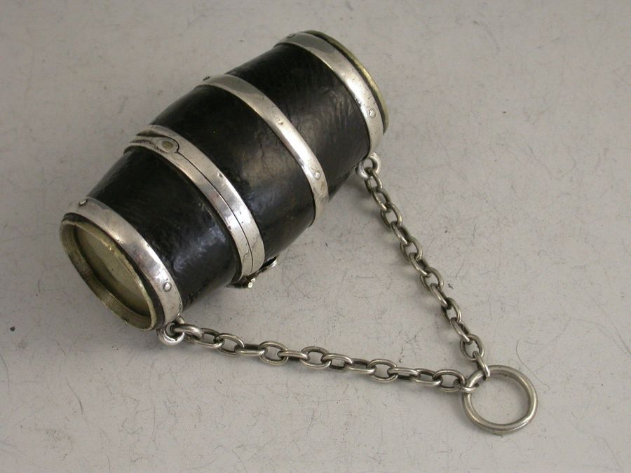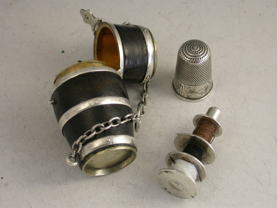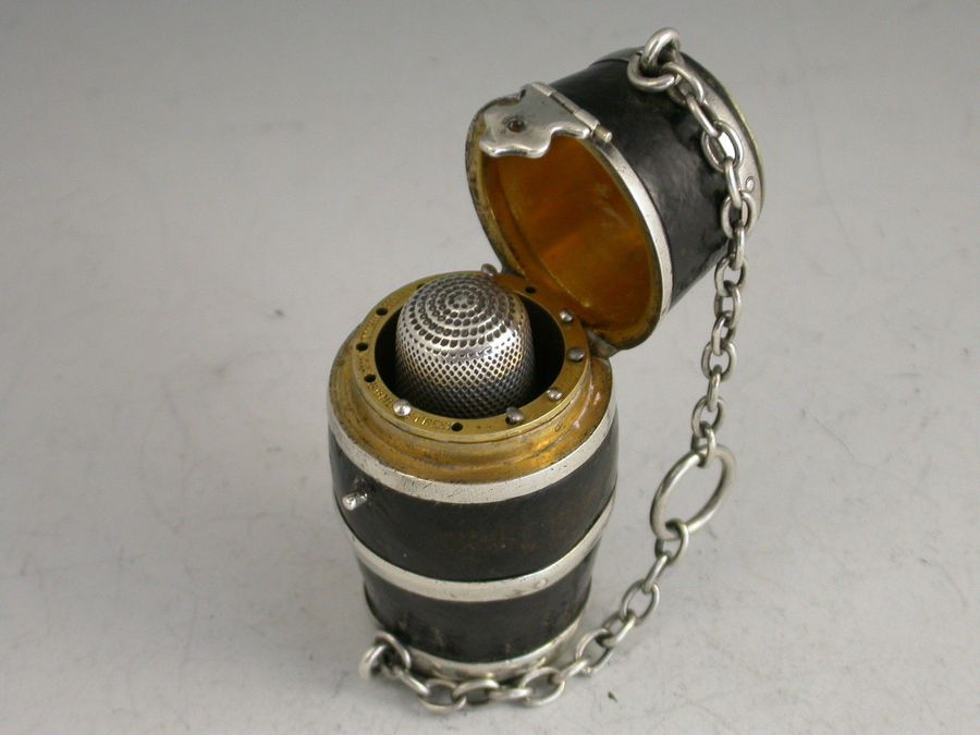 Victorian Silver Mounted Leather Clad Barrel Sewing Etui